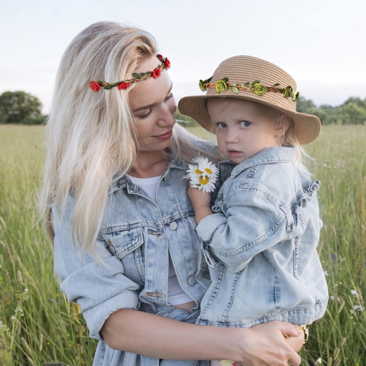 - GRÖSSE: Umfang: ca. 45 cm. Das Blumenstirnband verfügt über ein elastisches und verstellbares Band, geeignet für Frauen, Mädchen und kleine Mädchen. Blütendurchmesser: ca. 1,8 cm.