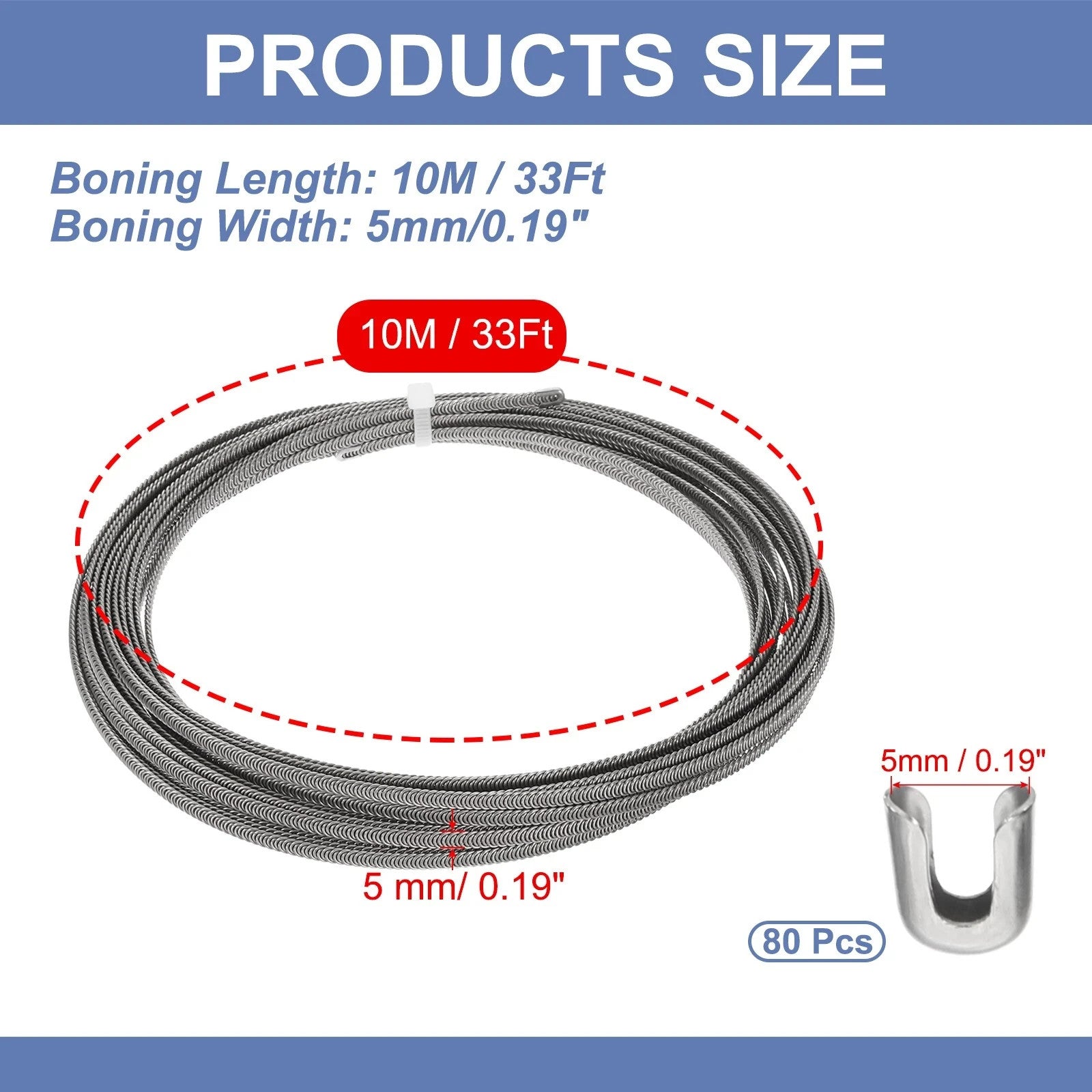 10m 304 Edelstahl Korsettstäbe Spirale Metall Korsettstab Set 5mm Breit
