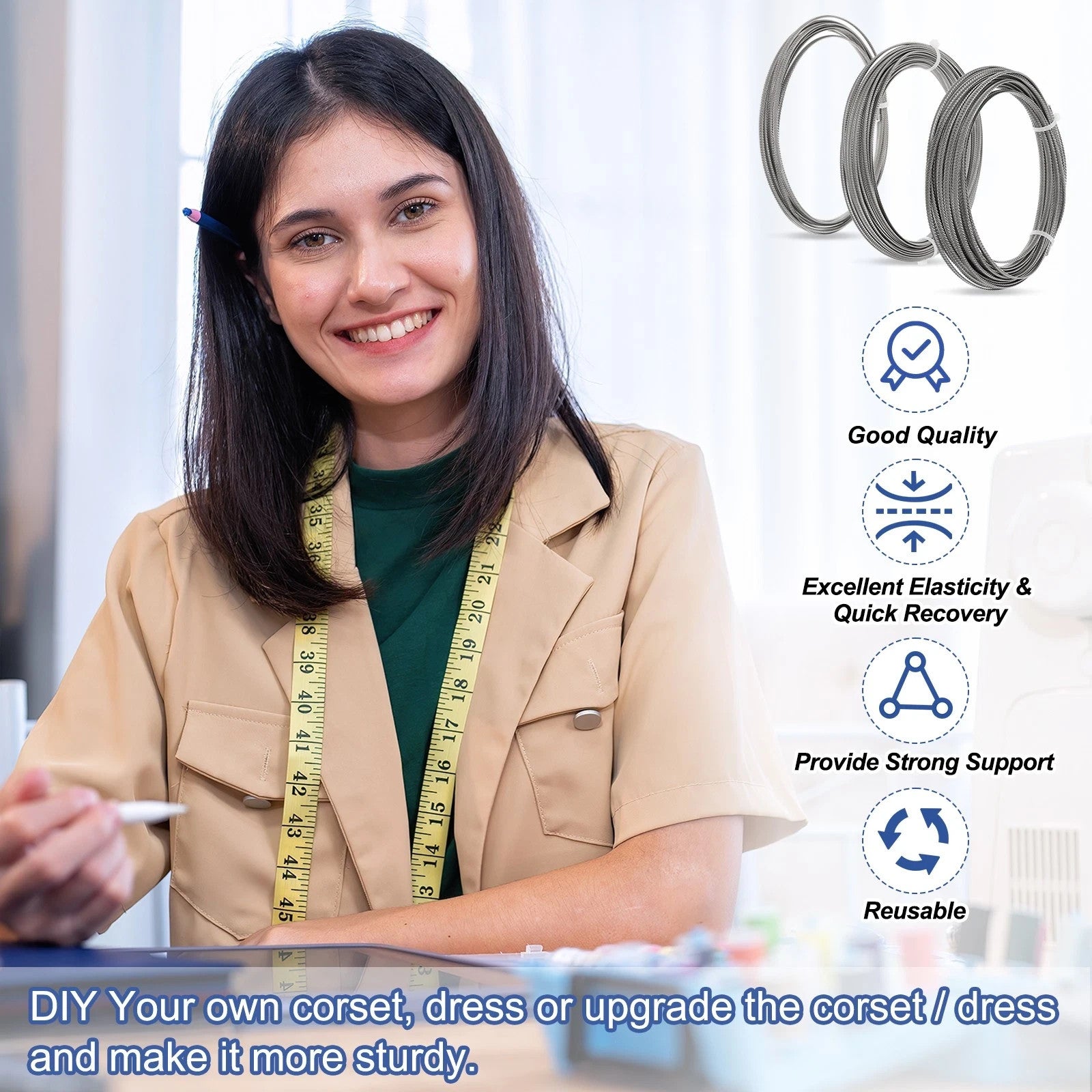 HERAUSRAGENDE ELASTIZITÄT UND SCHNELLE RÜCKSTELLUNG - Diese Metall-Korsettstäbe zeichnen sich durch hohe Elastizität und schnelle Rückstellung aus, behalten ihre ursprüngliche Form ohne Verformung. Sie bieten hervorragende Unterstützung und Flexibilität für verschiedene Kleidungsstücke.