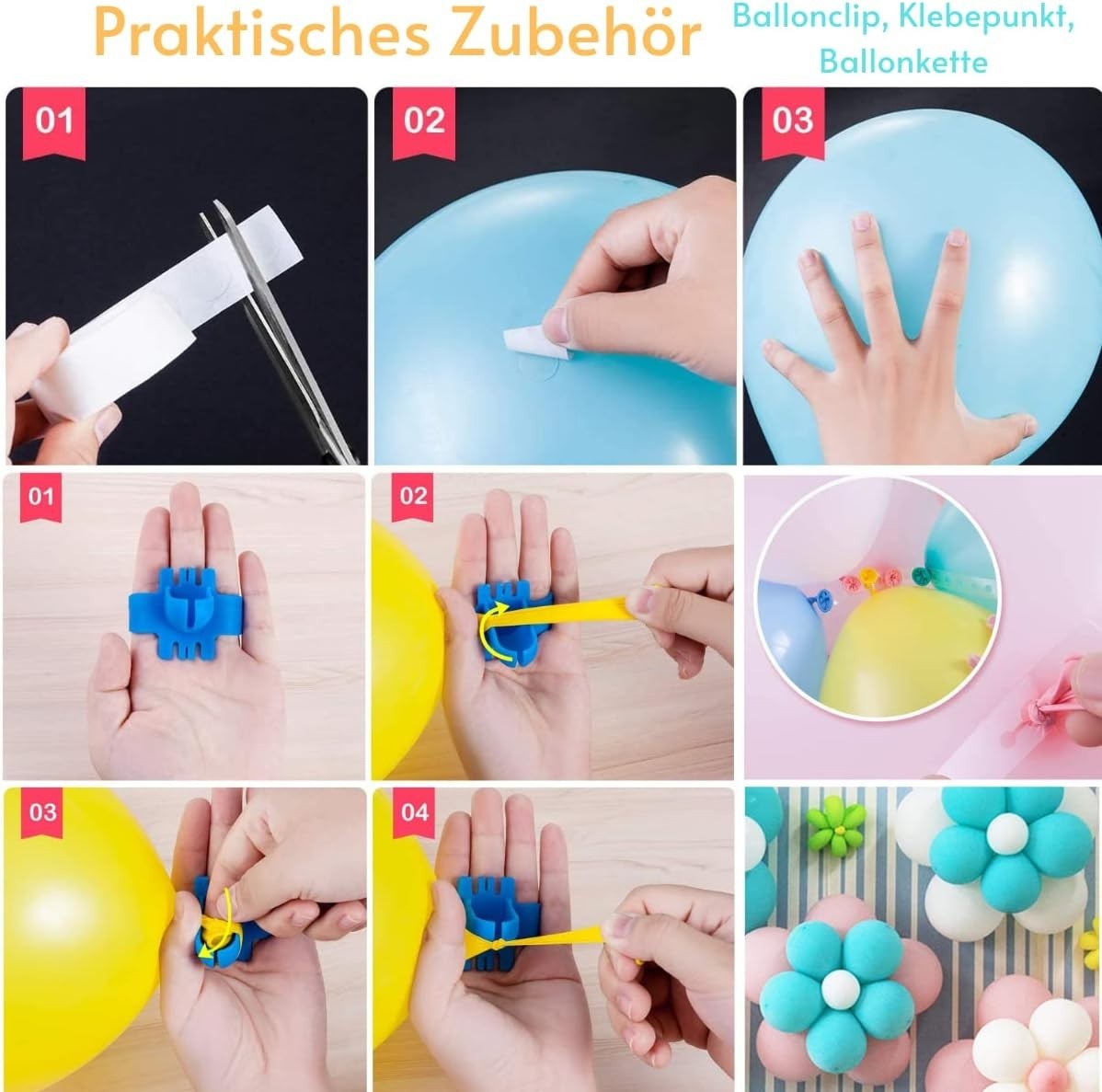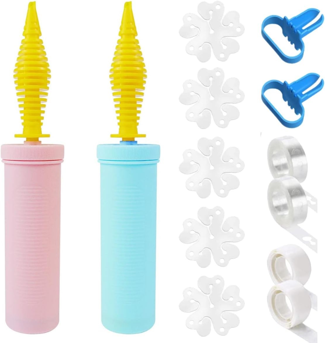 - 【Ballonpumpe Set】Sie erhalten 2 Luftpumpen in Macaron-Farbe und 5 Ballonknoten 2 Rollen Ballonklebepunkt 2 Rollen Ballonkette,Verwenden Sie sie, um Ihre Party ganz einfach zu dekorieren.