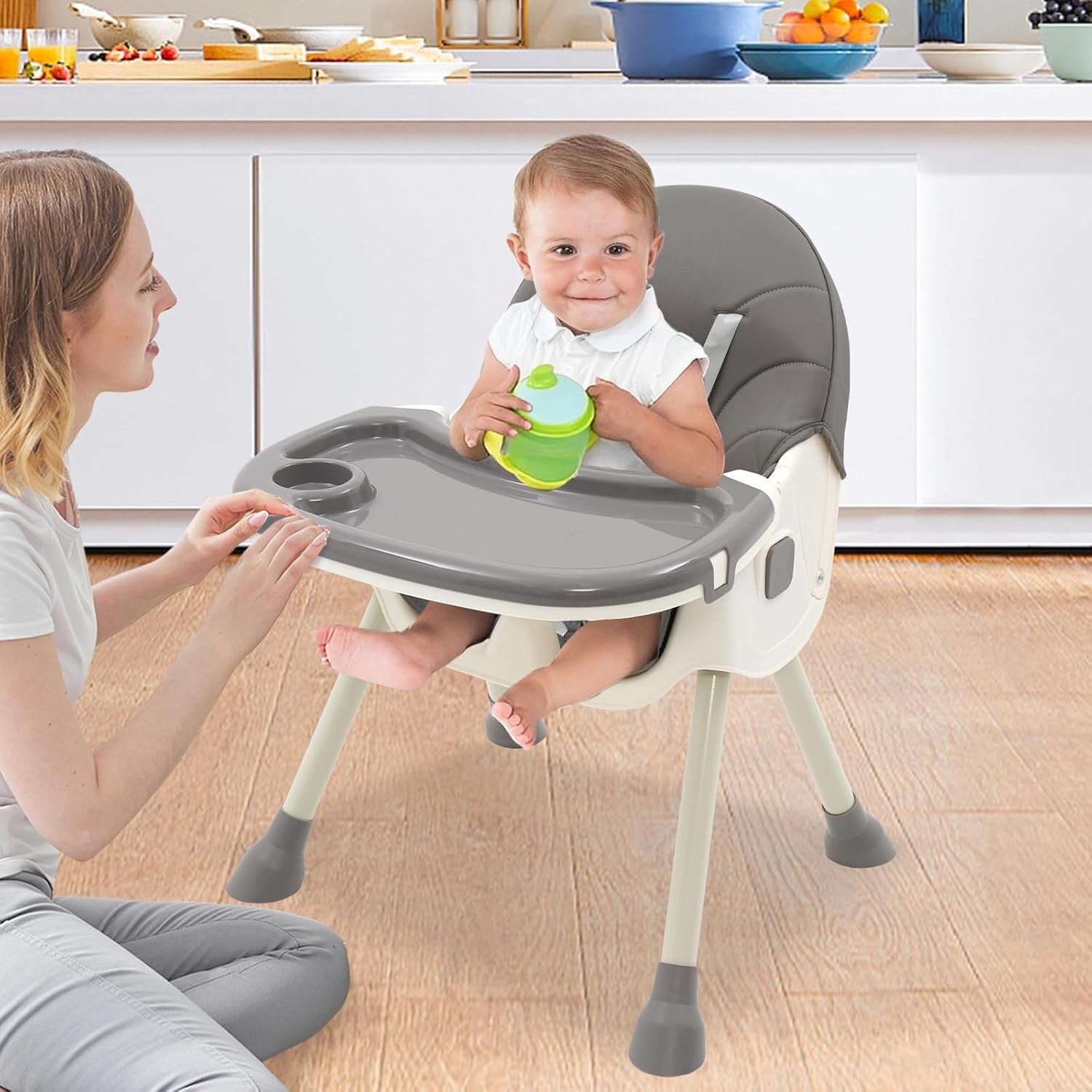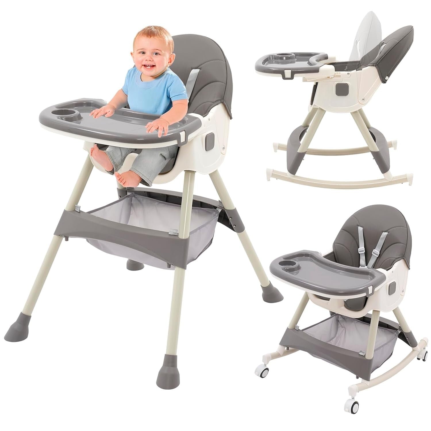 Hochstuhl Baby 3in1 Kinderhochstuhl mit Tisch und Rollen Hochstuhl Verstellbar Klappbar Babystuhl Kombihochstuhl mitwachsend Esszimmerstuhl ab 6 Monate Kinder Kleinkinder grau