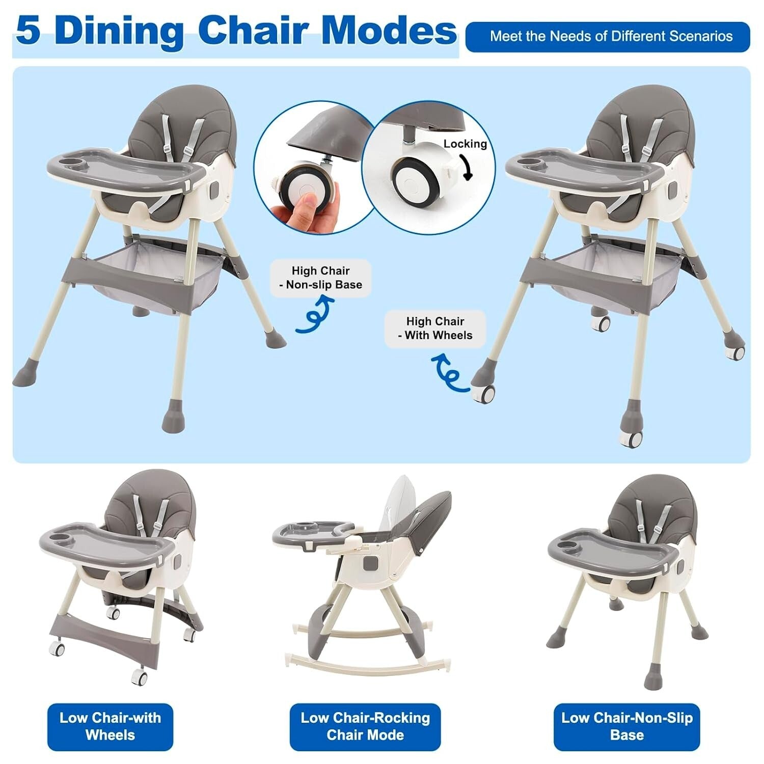 • 【Fünf Konvertierungsmodi hochstühle】Niedrig baby essen stuhl, hoher kinder essen stuhl, Schaukelpferd kinderstühle, Rückenlehne in 3 Positionen, Rollschiebestuhl