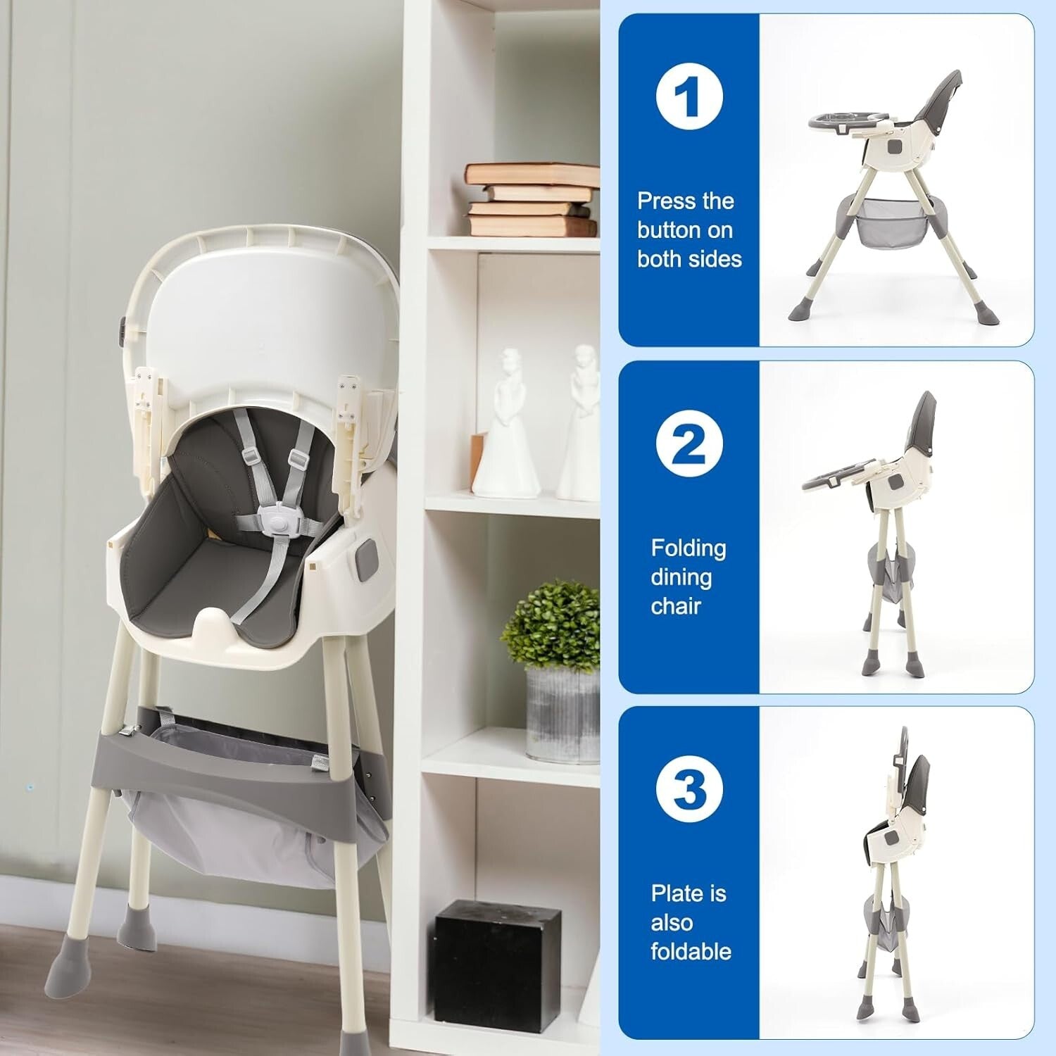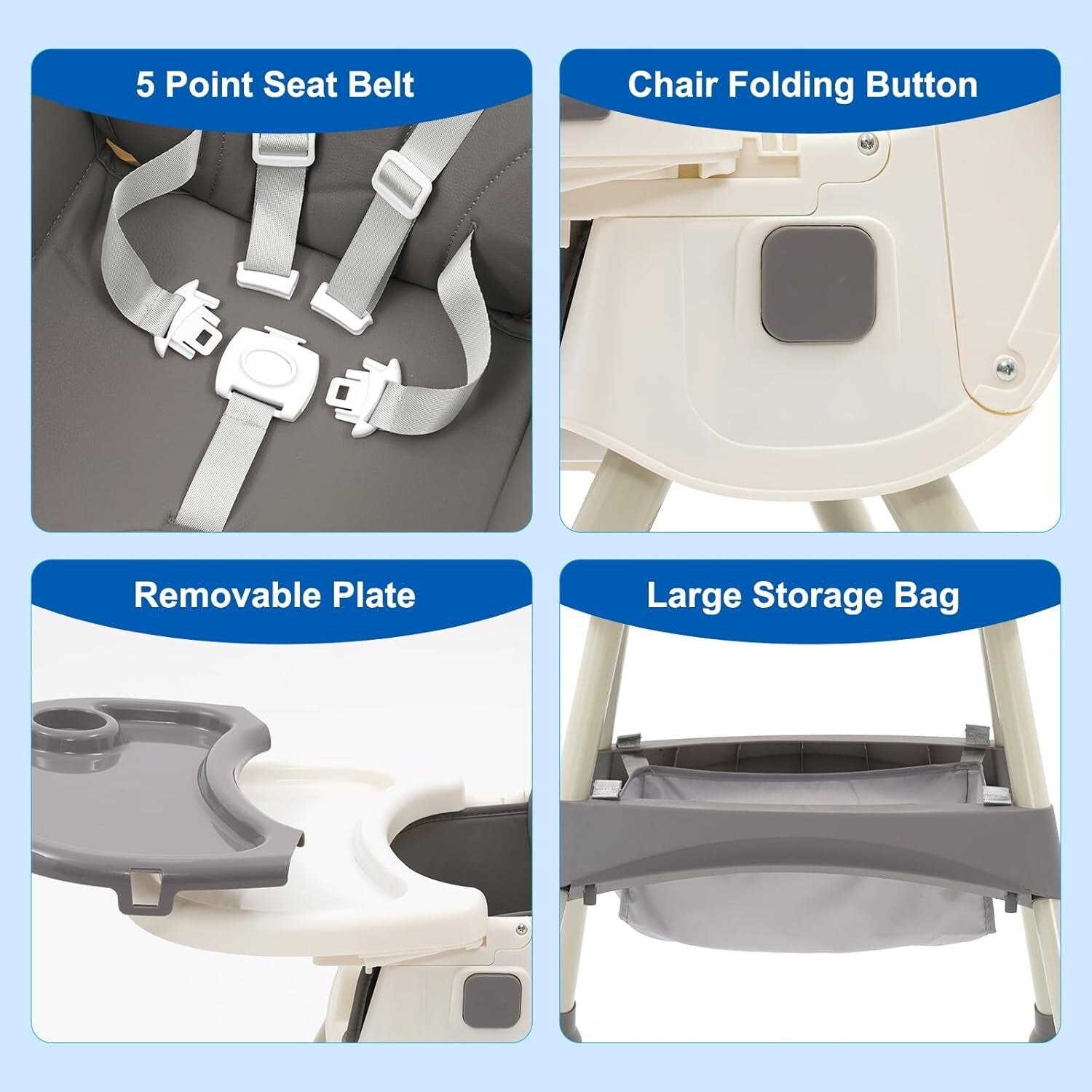 • 【Einfach zu lagern und zu transportieren】Die Sitze können zusammengeklappt werden, einschließlich der Tabletts. Die Aufbewahrung und das Herausnehmen nehmen keinen Platz ein.Bewahren Sie Babysachen ganz einfach in der mitgelieferten großen Aufbewahrungstasche auf