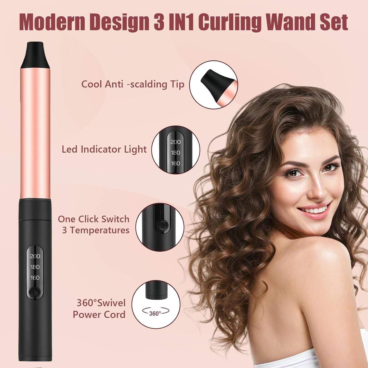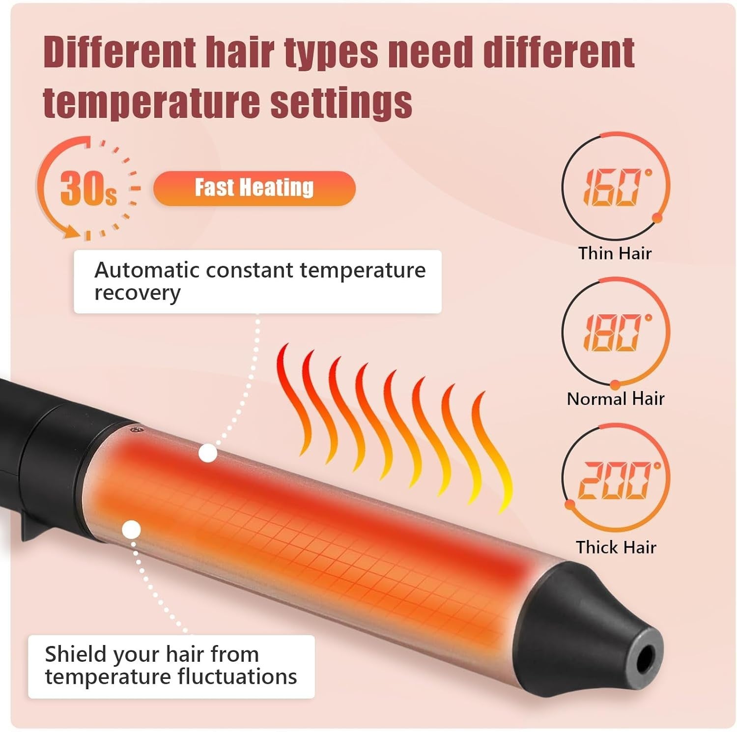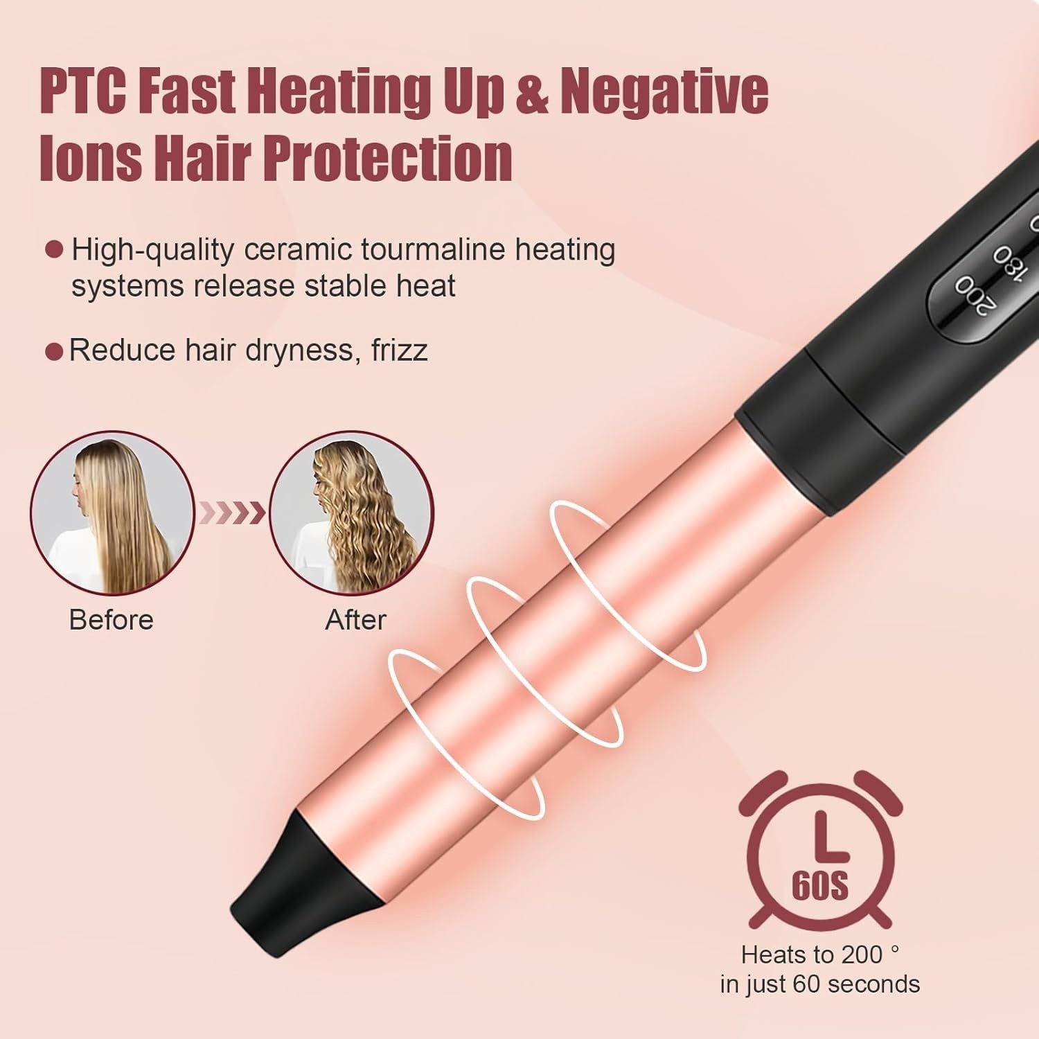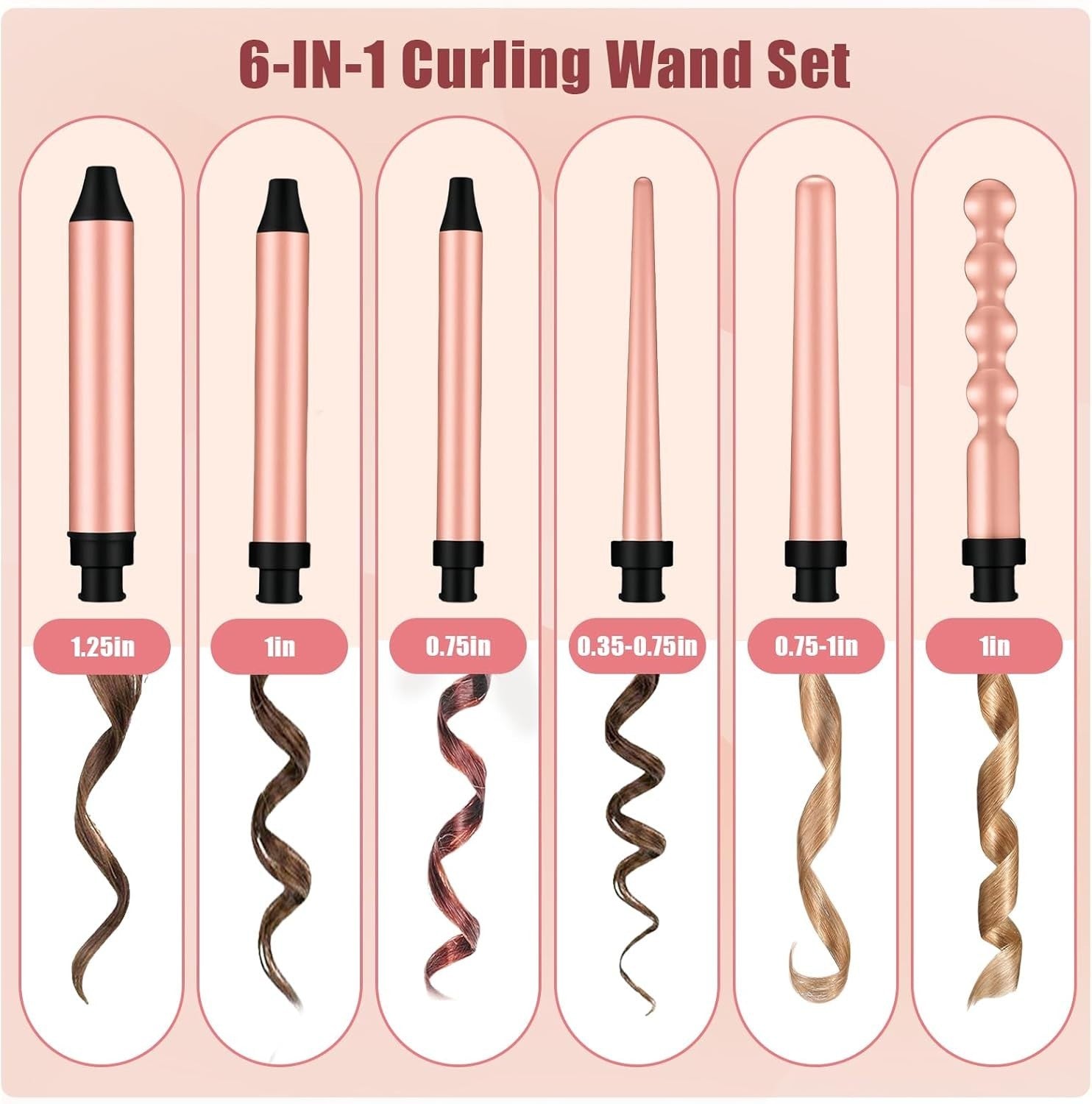 6-in-1 Lockenstab-Set mit Keramikbeschichtung, Multifunktions Austauschbare Lockenstäbe mit LCD Anzeige, 160°C-200°C, Temperaturverstellbar, für Große Locken und Kleine Locken