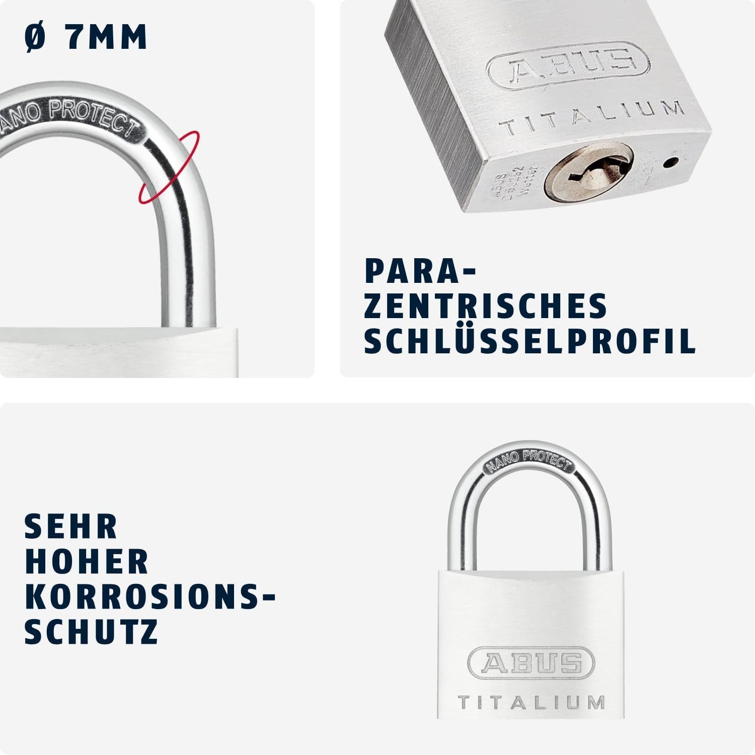 ABUS Vorhängeschloss Titalium 64TI/45 - Kellerschloss mit Schlosskörper aus Spezial-Aluminium - gehärteter Stahlbügel - ABUS-Sicherheitslevel 5