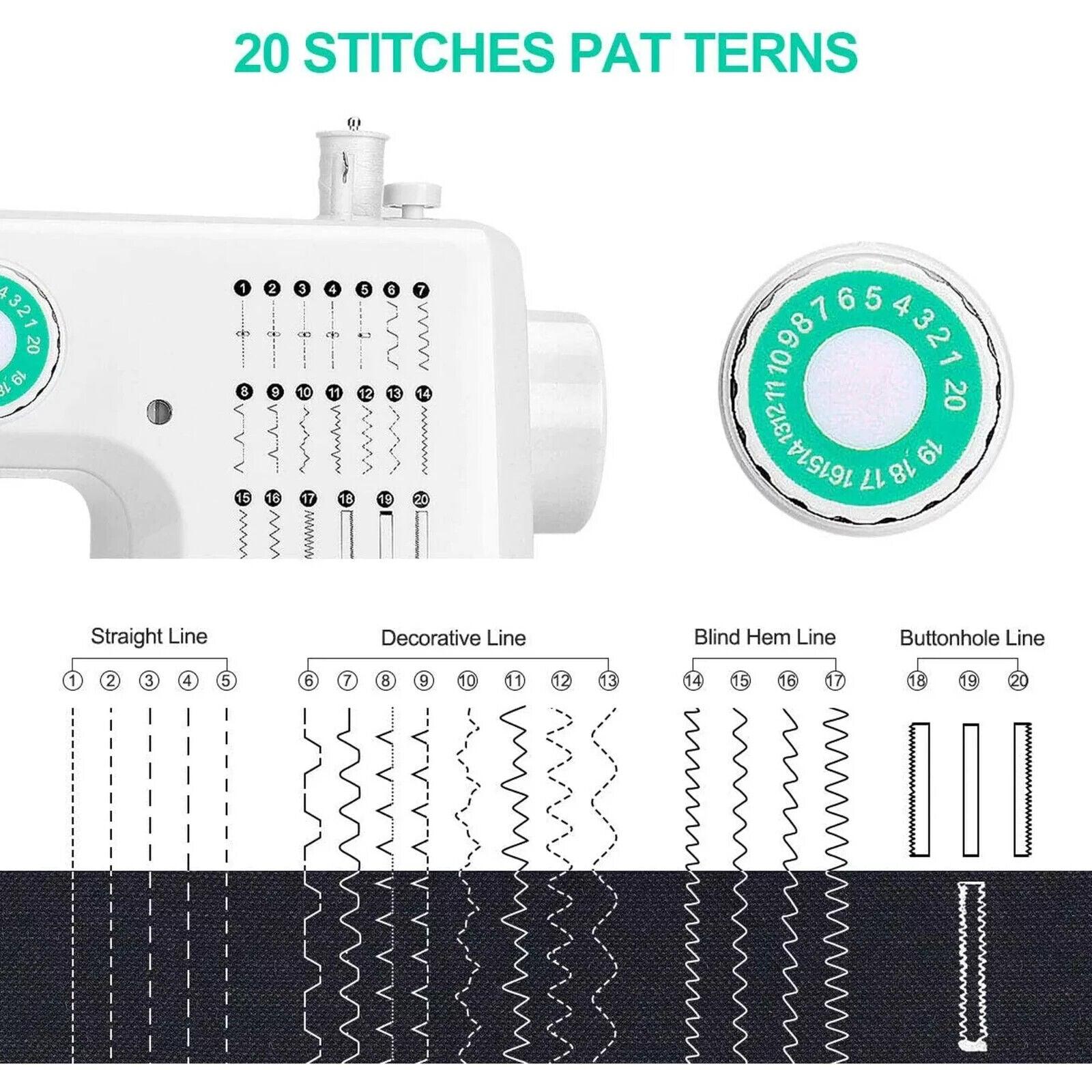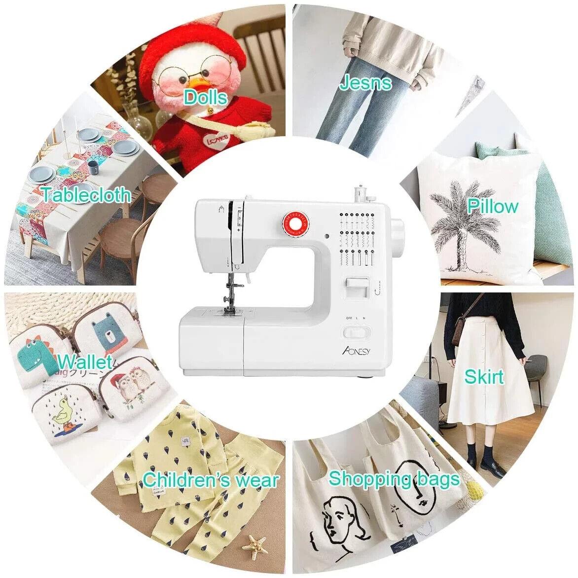 Die Nähmaschine von Aonesy kann alle Arten und Längen von Stoffen aufnehmen, gefolgt von 20 integrierten Stichen mit dekorativen und Stichdesigns sowie Ein-Schritt-Knopflochstilen zum Nähen von Hemden und Mänteln.