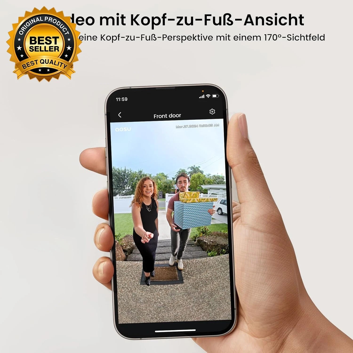 AOSU 2K HD Türklingel Mit Kamera Kabellos, Smarte Video Türklingel Mit Gong 170