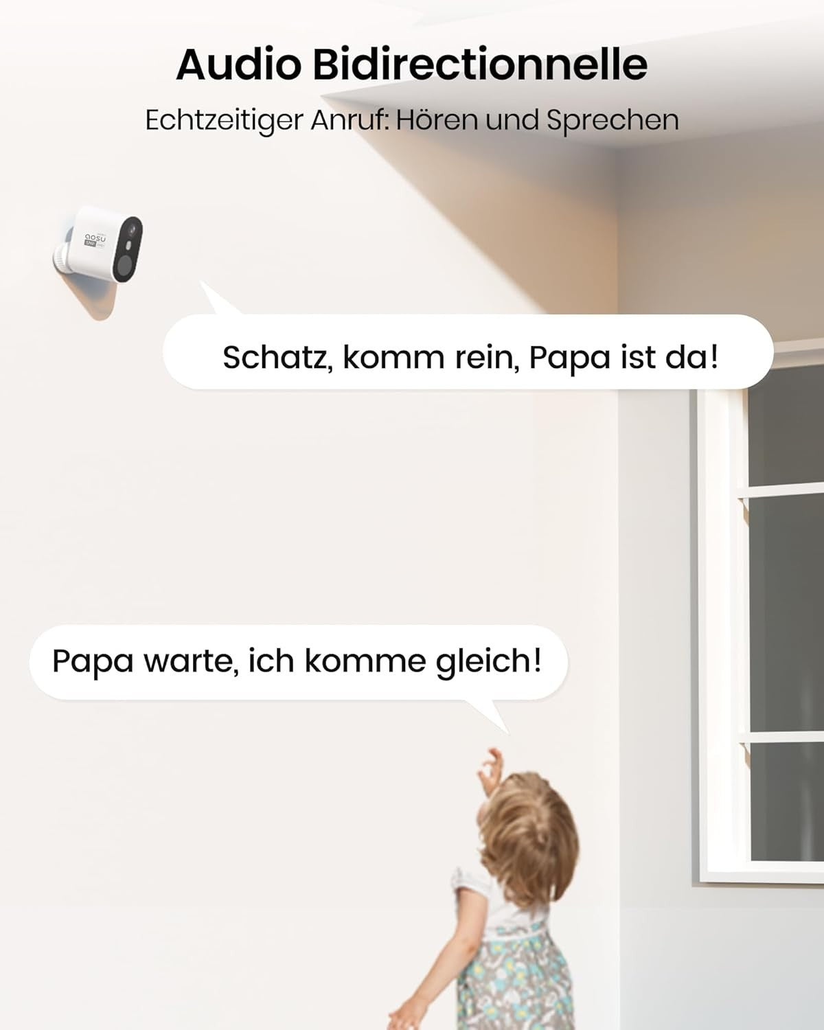 • 【Intelligente PIR-Bewegungserkennung und smarte Benachrichtigungen】 Dank der AOSU-Technologie ist die Bewegungserkennung präziser und intelligenter. Alle menschlichen Bewegungen innerhalb von 10 Metern werden schnell erkannt und sofort benachrichtigt. Sie erhalten eine Bildvorschau direkt in der App. Der PIR-Sensor und intelligente Algorithmen minimieren Fehlalarme und garantieren maximale Sicherheit.