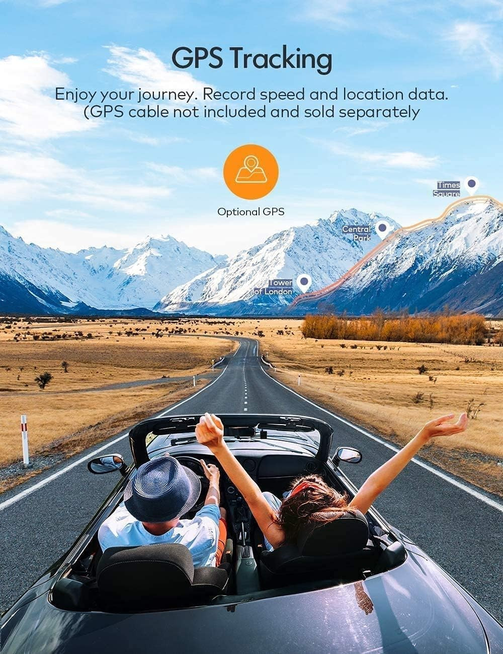 • Optionale GPS-Schnittstelle - Verbinden Sie eine GPS-Antenne (nicht im Lieferumfang enthalten) mit der Autokamera, GPS kann Fahrroute, Geschwindigkeit, Länge und Breitengraddaten aufzeichnen. Es liefert Beweise, Begleitung für sicheres Fahren.