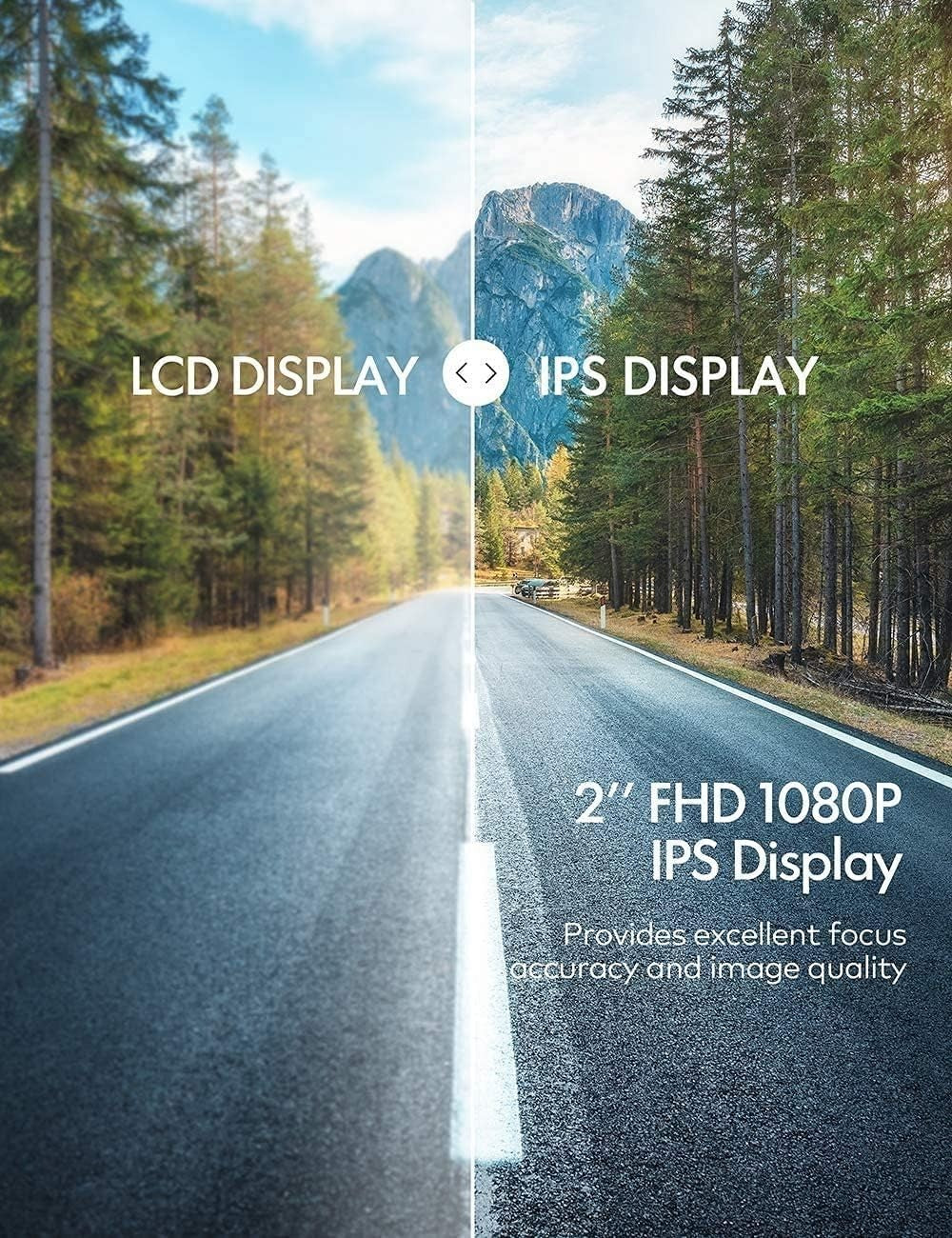 • Verschiedene Funktionen und 2 Zoll IPS-Bildschirm: Bewegungserkennung, Loop-Aufzeichnung, WDR-Technologie, Parkmonitor und Verbindung GPS-Antenne (GPS-Antenne ist nicht im Lieferumfang enthalten). Der 2-Zoll-IPS-Bildschirm bietet Ihnen eine klarere Sicht auf die realistische Ansicht.
