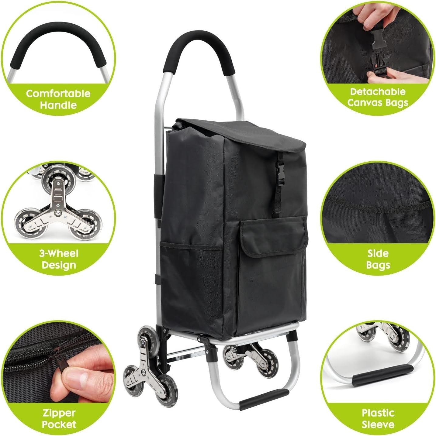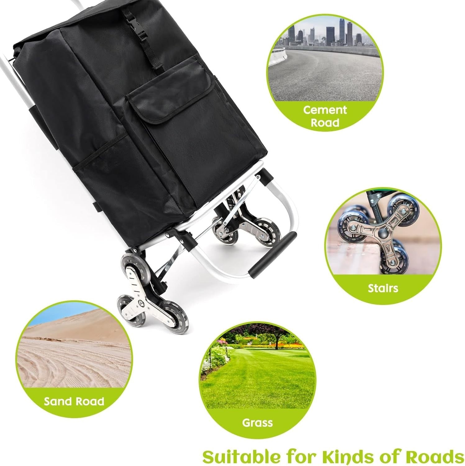 - 【Edelstahl-Dreiecksrollen】Drei speziell geformte und befestigte Rollen aus Edelstahl machen das Klettern von Treppen und das Manövrieren durch jeden Straßentyp einfach und bequem. Das Keine-Angst-vor-dem-Treppen-Prinzip sorgt für eine mühefreie Fahrt, und die verbesserte Reifenstruktur sorgt für eine leise und ruckfreie Fahrt.