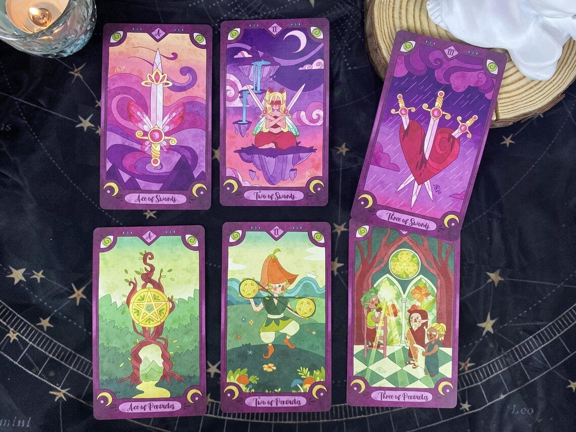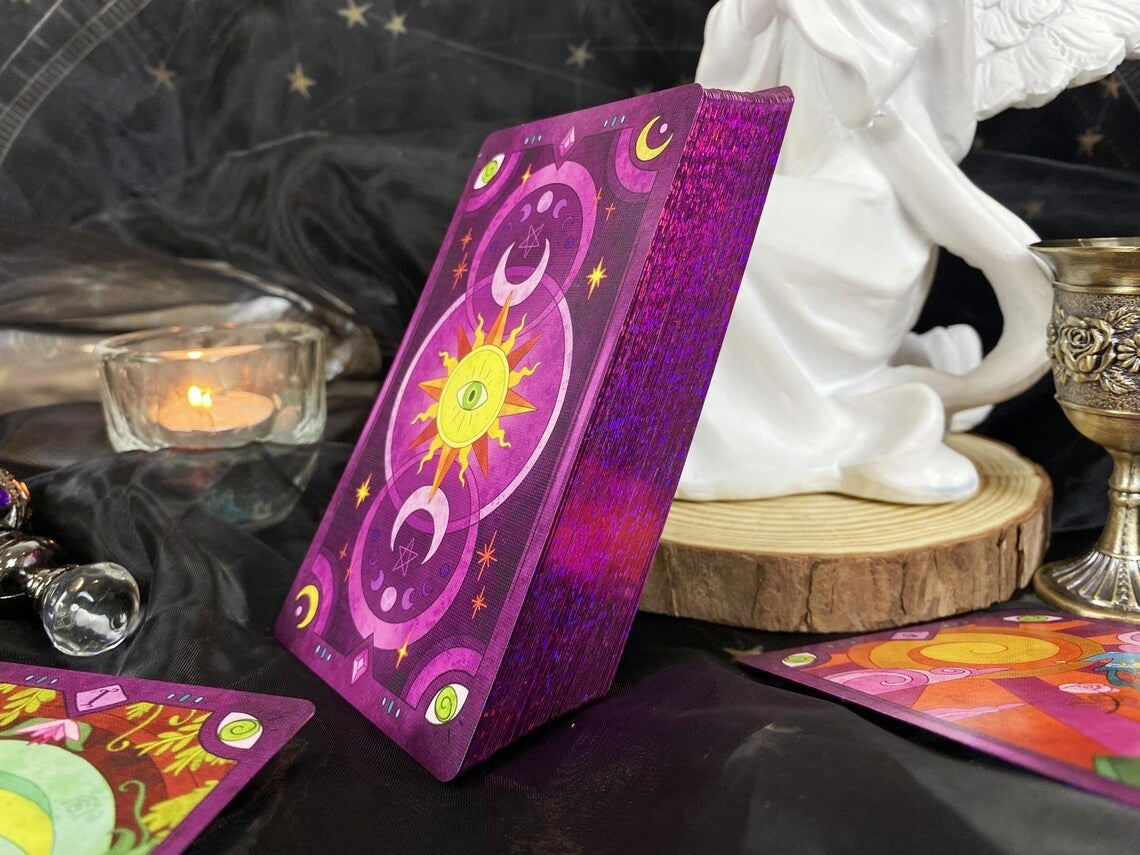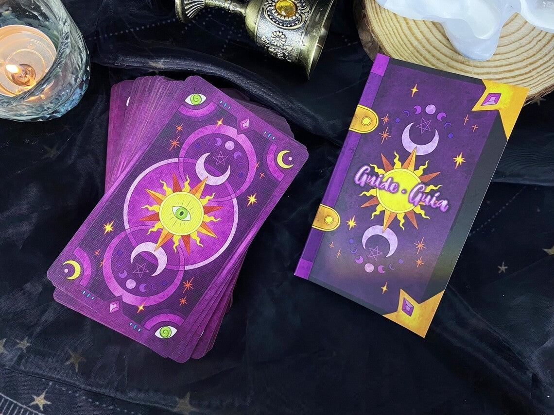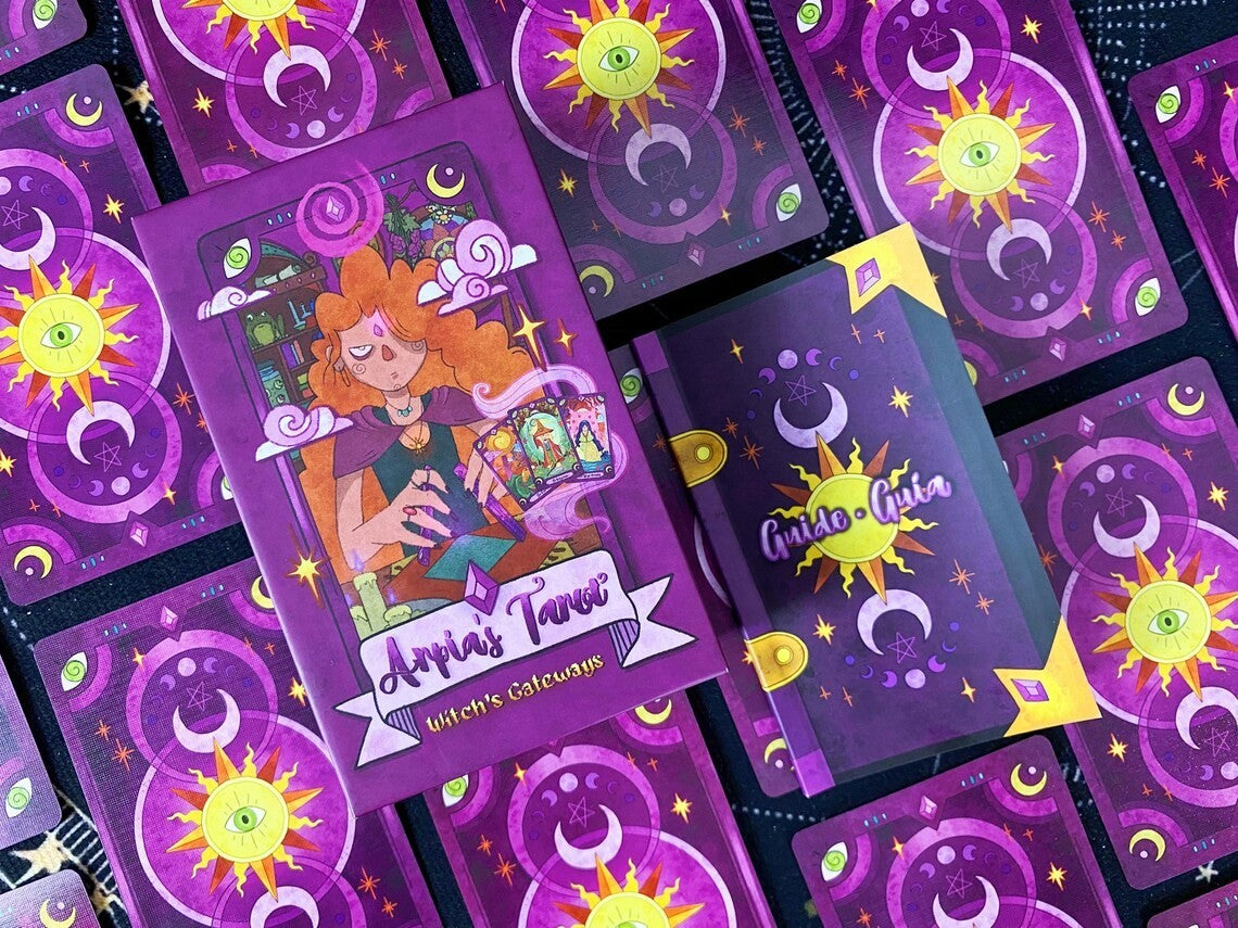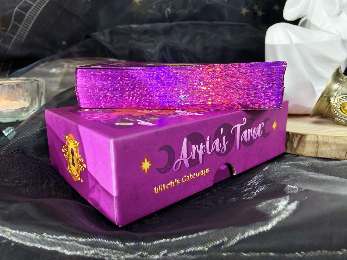 Arpías Tarot ist ein magisches Kartendeck, das von Arpia, einer Tarot-lesenden Hexe, geschaffen wurde. Sie begleitet Sie auf dem Weg der Selbstreflexion durch ihre Karten, von denen jede ein Fenster zu mystischen Welten ist. Die kleinen Arkana werden von Feen, Meerjungfrauen, Drachen und Gnomen bewohnt, Wesen, die mit den Elementen der Natur verbunden sind und Ihnen helfen werden, die Antworten zu finden, die Sie suchen.