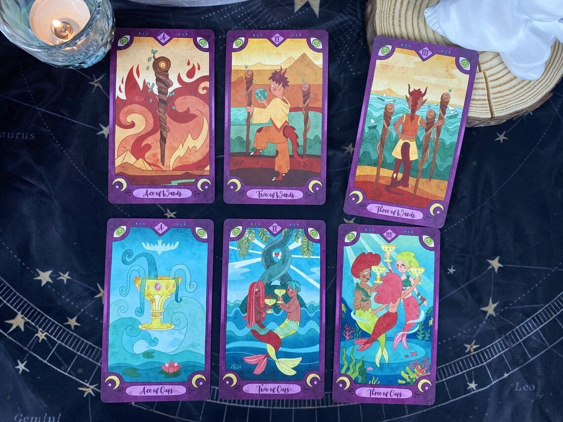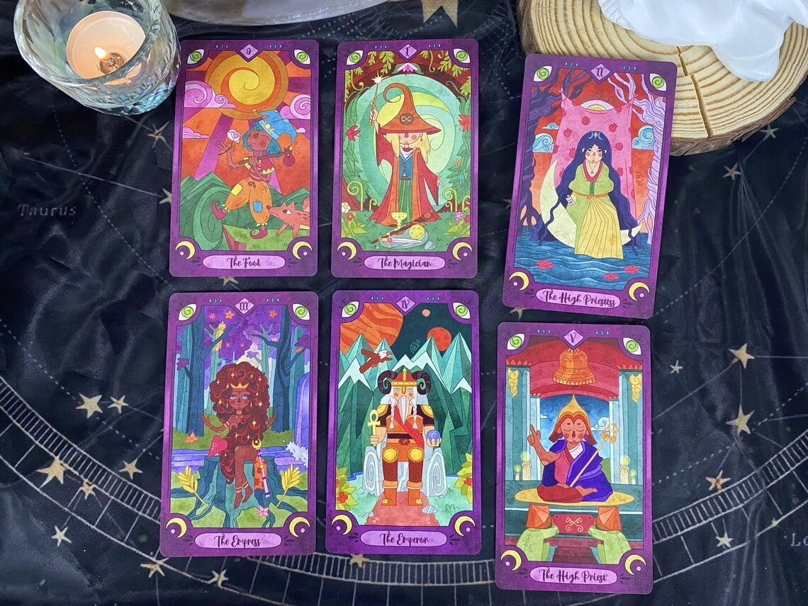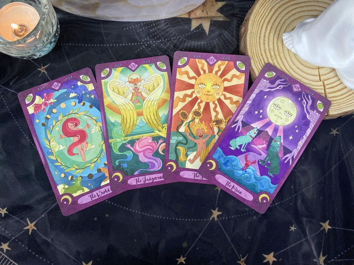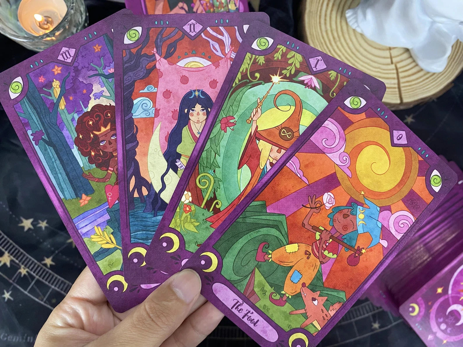 Arpías Tarot ist ein magisches Kartendeck, das von Arpia, einer Tarot-lesenden Hexe, geschaffen wurde. Sie begleitet Sie auf dem Weg der Selbstreflexion durch ihre Karten, von denen jede ein Fenster zu mystischen Welten ist. Die kleinen Arkana werden von Feen, Meerjungfrauen, Drachen und Gnomen bewohnt, Wesen, die mit den Elementen der Natur verbunden sind und Ihnen helfen werden, die Antworten zu finden, die Sie suchen.