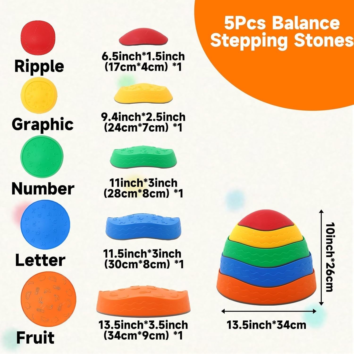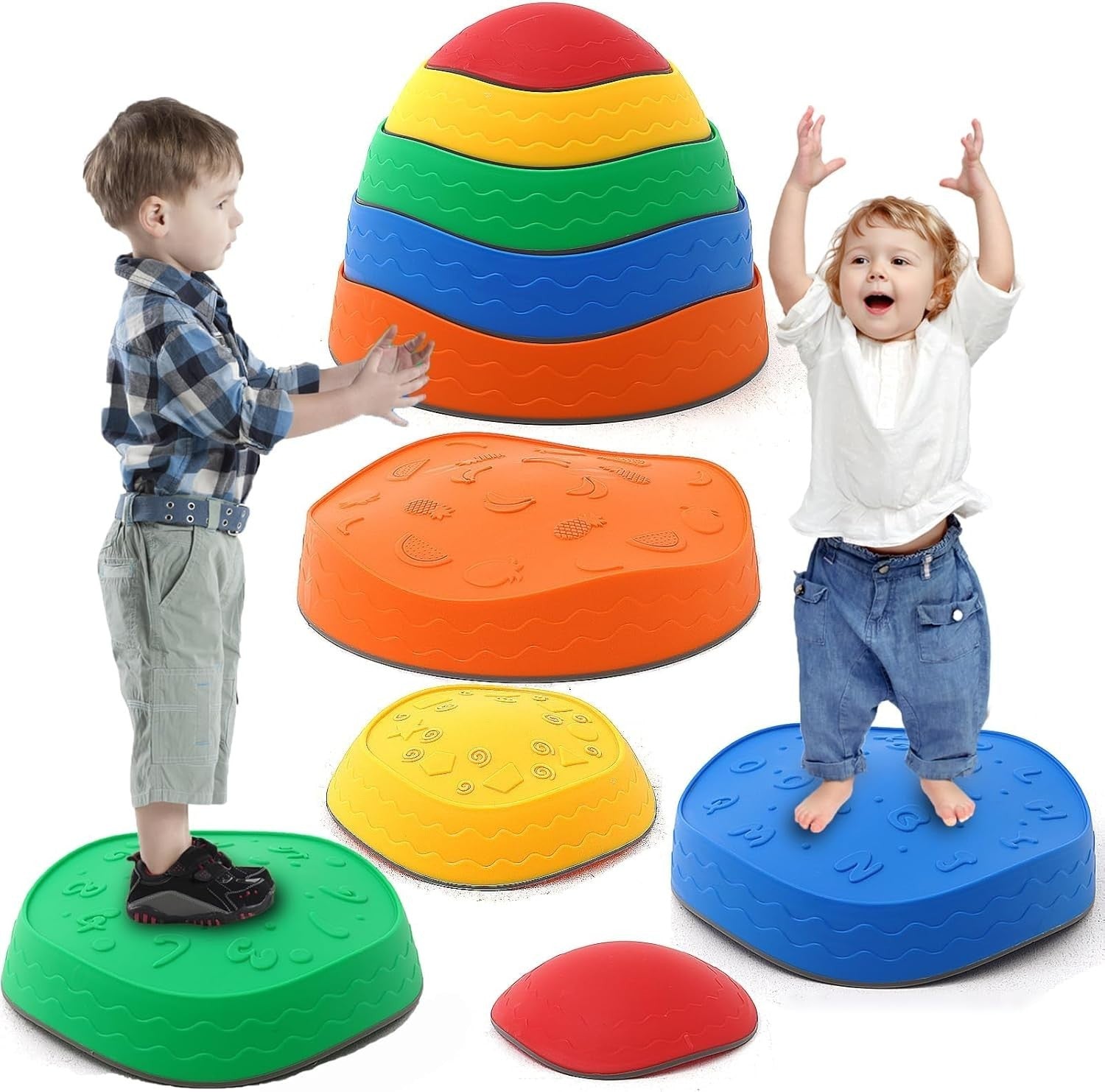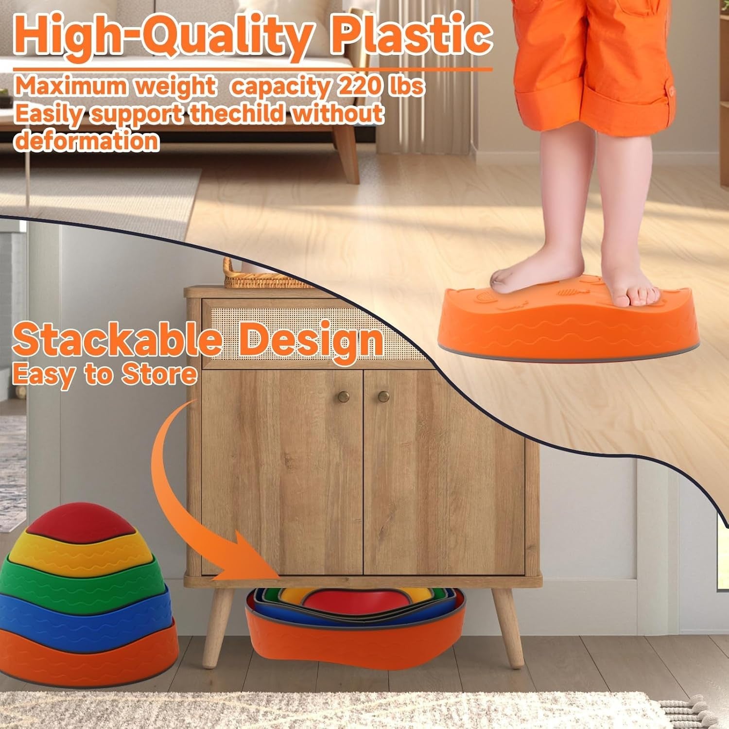 - 【Balanciersteine für Kinder 5-teiliges】Enthält 5 bunte stapelbare rutschfeste Balancieren, der größte Balance-Stein hat einen Durchmesser von 34 cm (13,3 Zoll) und ist 9 cm (3,5 Zoll) hoch, der kleinste Balance-Stein ist 7 cm (3,7 Zoll) im Durchmesser, 4 cm (1,5 Zoll) hoch, mit einer maximalen Tragfähigkeit von 150 Pfund. Ein tolles Sinnesspielzeug, das Ihrem Kind hilft, Vertrauen in Gleichgewicht und Koordination aufzubauen, die Hand-Auge-Koordination und die Farberkennung zu entwickeln.