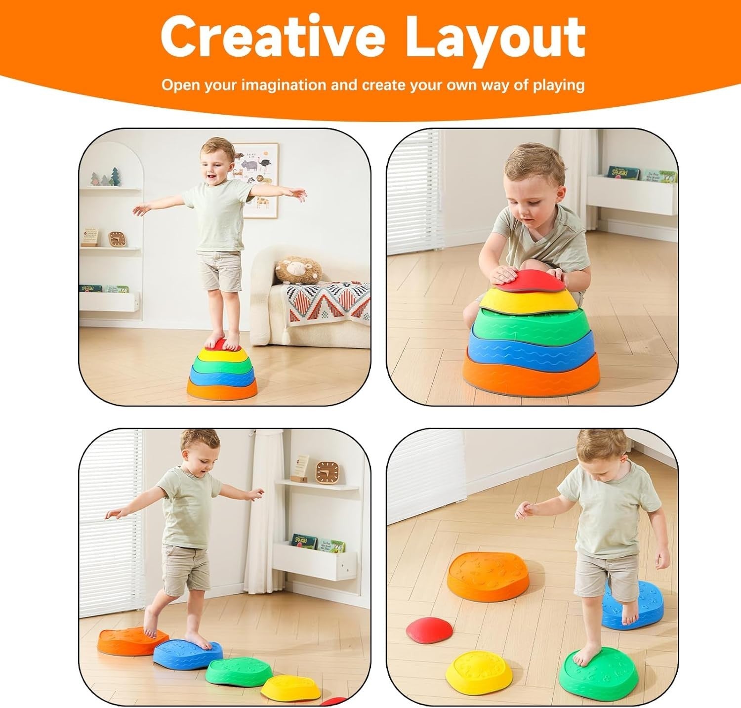 - 【Fördert Gleichgewicht & Koordination】Kinder können ihre Arme und Beine koordinieren, indem sie zwischen verschiedenfarbigen Balancesteinen springen und gehen. Diese Balance-Trittsteine für Kinder fördern körperliche Aktivität und aktives Spielen und motivieren Ihr Kind zum Springen, Strecken, Klettern und Balancieren, um seine motorischen Fähigkeiten zu entwickeln.