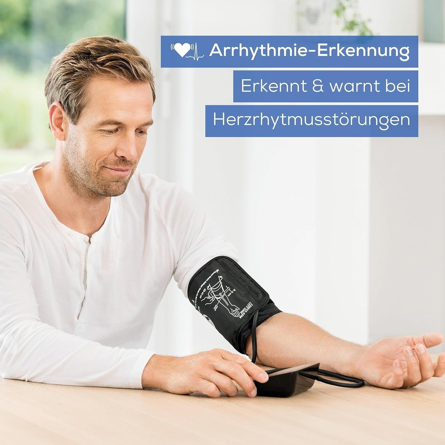 Beurer BM 54 Oberarm-Blutdruckmessgerät, klinisch validiert, XL-Display, App-Anbindung mit zertifiziertem Datenschutz, Arrhythmie-Erkennung, Manschette für Oberarme von 22-44 cm - Batterie nicht im Lieferumfang enthalten