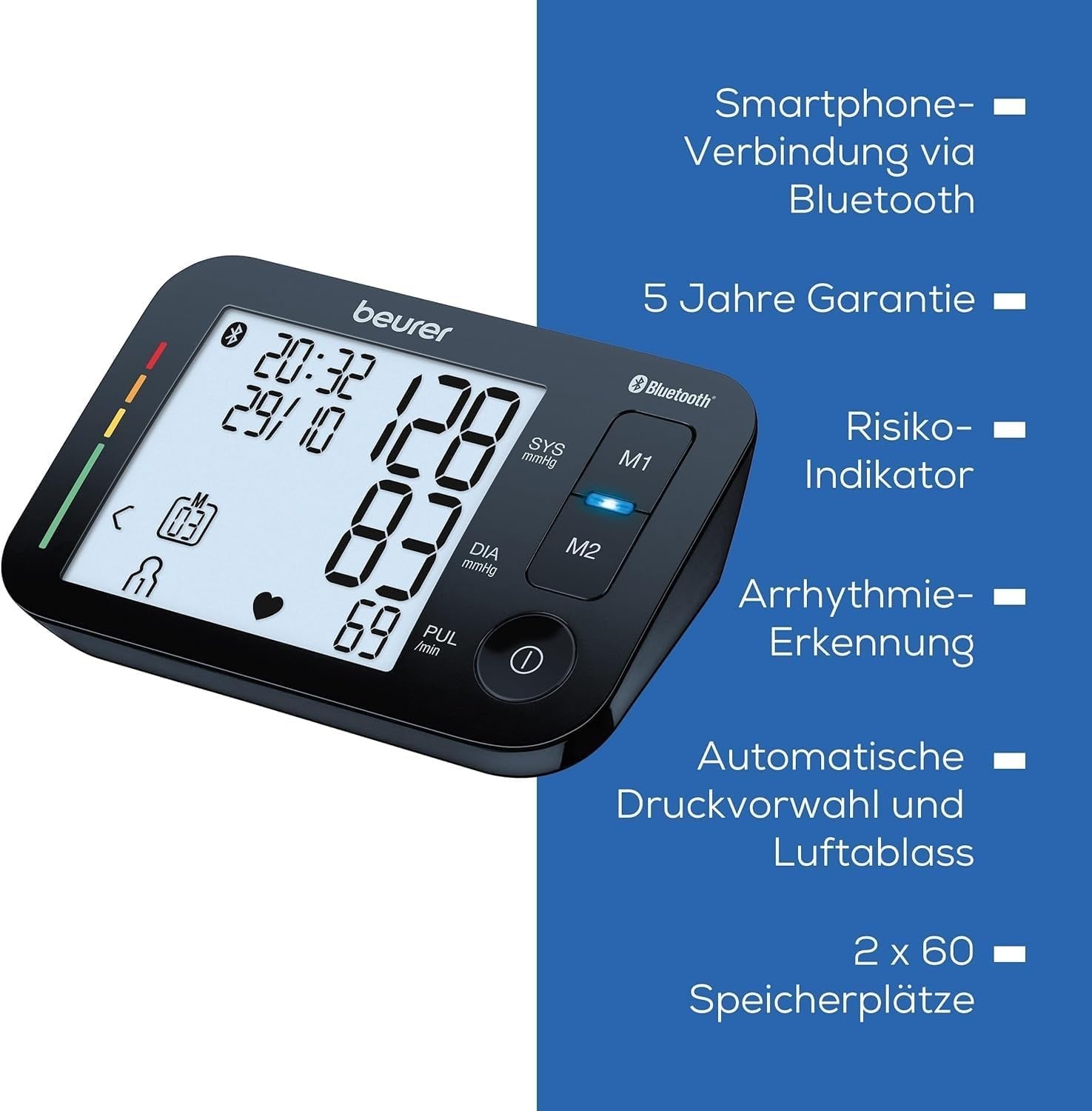 Beurer BM 54 Oberarm-Blutdruckmessgerät, klinisch validiert, XL-Display, App-Anb