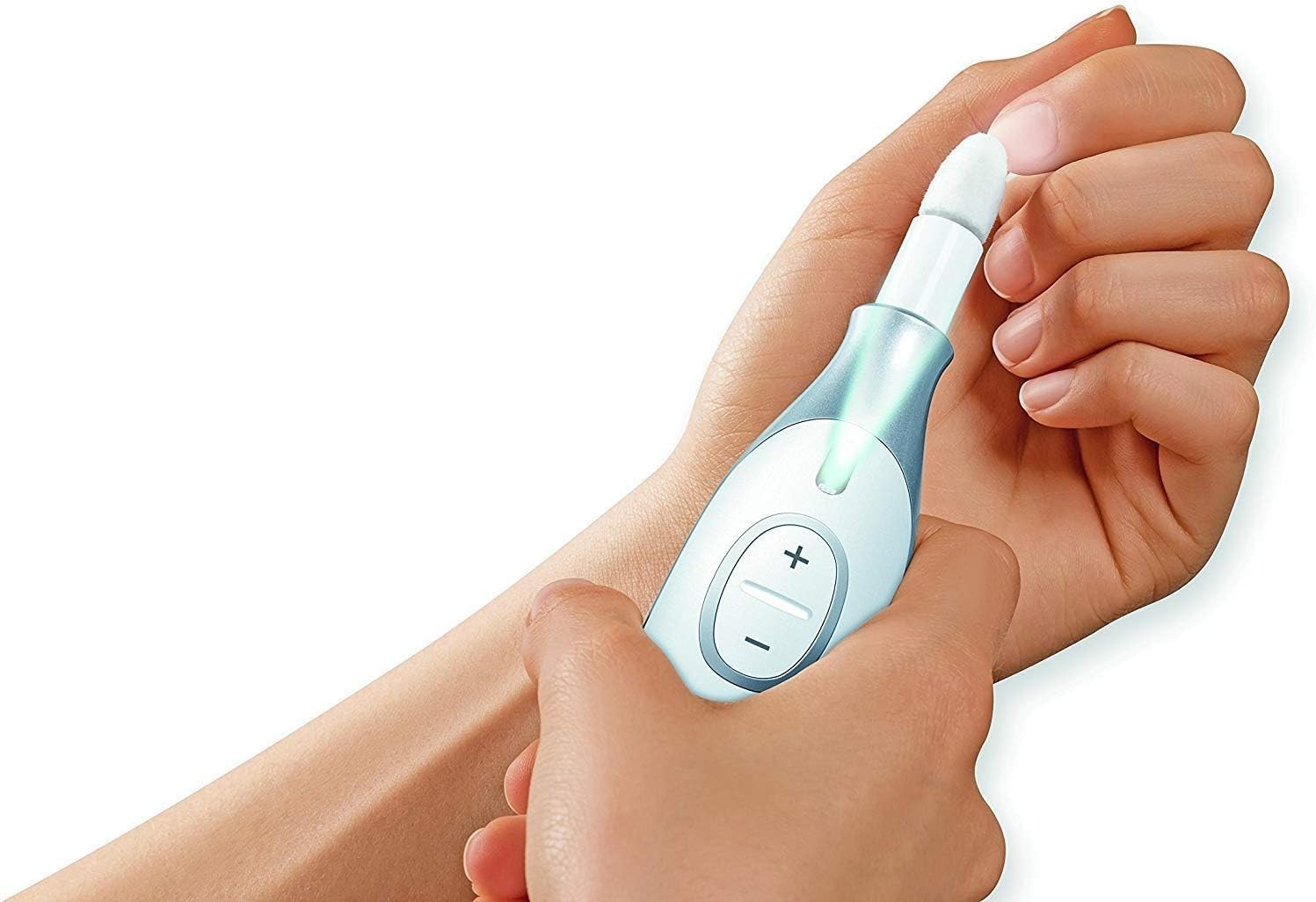 - Besonders angenehme Anwendung durch ergonomisches Design: verhindert das Abrutschen während der Behandlung, das helle LED Licht macht die zu behandelnde Stelle zudem besser sichtbar
