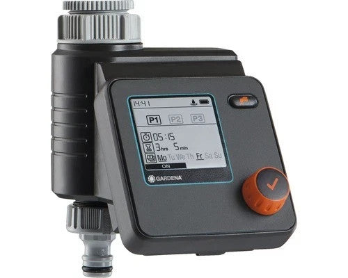Mit der GARDENA Bewässerungssteuerung Select können bis zu drei unterschiedliche Programme festgelegt werden, die beispielsweise die Sprinkleranlage, den mobilen Regner oder die Micro-Drip-Anlage starten und somit die Rasenfläche oder die Gartenanlage bewässern. Die Programmierung erfolgt leicht und intuitiv über den großen Dreh-/Druckknopf am abnehmbaren Bedienteil: gewünschte Startzeit und Bewässerungsdauer (zwischen mindestens 1 Minute und maximal 7 Stunden, 59 Minuten) sowie Wochentage pro Plan festlegen und schon übernimmt die Bewässerungsanlage die Gießarbeit. Die Steuereinheit ist abnehmbar, sodass sie für die anfängliche Programmierung oder zwischenzeitliche Anpassungen in die Hand genommen werden kann. Eine Display-Sperre verhindert unerwünschte, versehentliche Änderungen der Programmpläne. Praktische Zusatzfunktionen des Garten-Bewässerungssystems erleichtern die Handhabung. Die Funktion Water Now erlaubt eine unkomplizierte Wasserentnahme außerhalb der einprogrammierten Bewässerungszeiten. Das ist praktisch, wenn nur schnell ein Eimer Wasser benötigt wird. Sollte der Batteriestand zu niedrig sein, sorgt die Safe-Stop-Technologie dafür, dass der nächste Bewässerungszyklus nicht gestartet wird. Besonders effizient und wassersparend wird der Garten bewässert, wenn ein zusätzlicher Bodenfeuchtesensor angeschlossen ist: Ist der Boden noch gut befeuchtet, wird das über den Bodenfeuchtesensor an die Bewässerungssteuerung übermittelt und diese setzt den nächsten Bewässerungszyklus aus. So ist die Gartenbewässerung stets an die Bodenfeuchte angepasst. Die Bewässerungssteuerung Select von GARDENA ist ideal für die automatische Bewässerung von Rasenflächen oder Beetarealen geeignet.