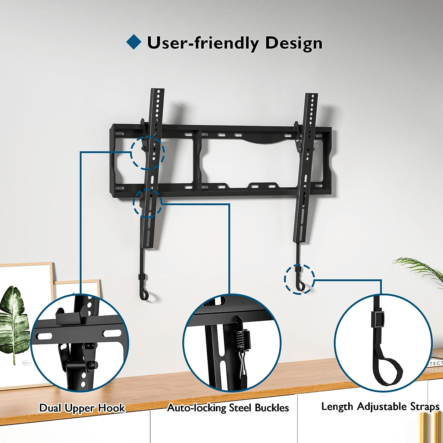 • Stabil und bequem: Diese kippbare Fernseher Wandhalterung mit hohlem Design kann direkt an einer Steckdose installiert werden und verdeckt so die Kabel. Der Fernseher kann mit einem abziehbaren Kabel einfach verriegelt und gelöst werden. Die starken und soliden Halterungskanten können das Verrutschen von Fernsehgeräten wirksam verhindern