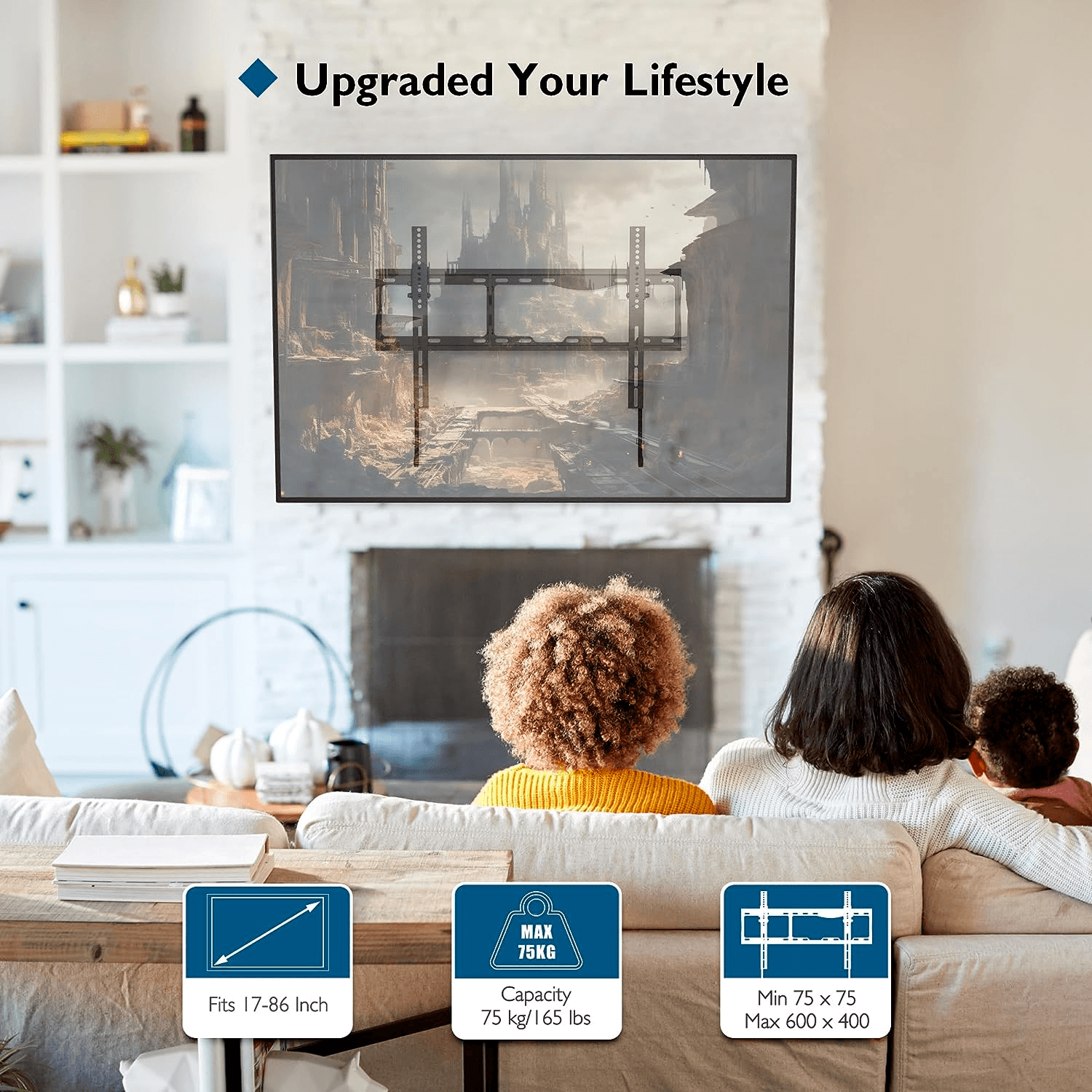 Montagemuster: Diese TV Wandhalterung passt für fast alle TV-Marken mit VESA-Mustern von 50 x 50 mm bis 600 x 400 mm.