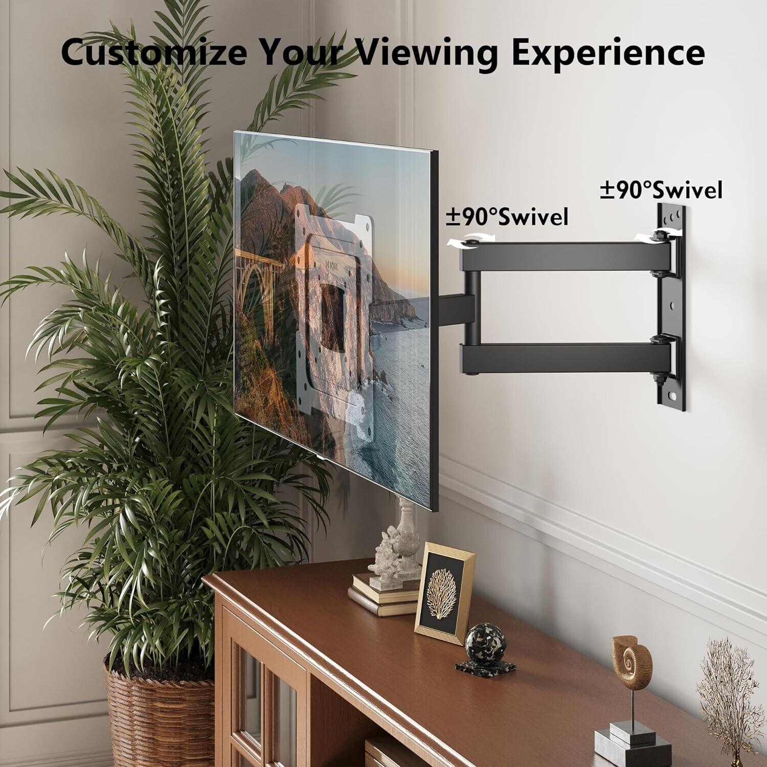 • Kipp- und Schwenkfunktion: Diese TV Wandhalterung verfügt über eine Neigung von 5 ° nach oben und -15 ° nach unten und eine Drehung um +/- 90 ° (der maximale Schwenkwinkel hängt von der Größe des Fernsehgeräts ab). Dies ermöglicht maximale Flexibilität für eine optimale Anzeige und eine reibungslose Einstellung in alle Richtungen.