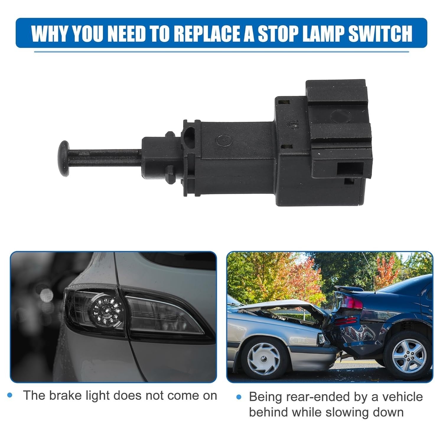 - 【Funktion】Wenn der hydraulische Bremslichtschalter funktioniert, wird das Bremslicht ein- oder ausgeschaltet, das heißt, der Moment, in dem das Bremspedal auftreten und losgelassen wird, um das Öffnen und Schließen des Bremslichts zu steuern. Wenn es eingeschaltet ist, kann es das Auto hinter sich auffordern: das vorausfahrende Auto tritt in den Bremszustand ein, verlangsamen oder halten Sie einen bestimmten Sicherheitsabstand ein.