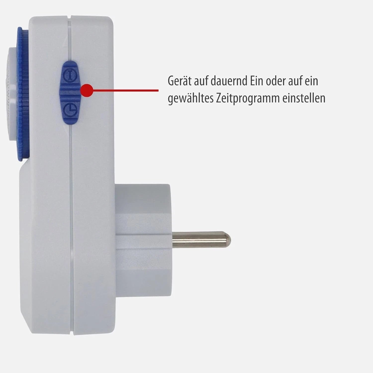 - Mechanische Zeitschaltuhr mit 24 Stunden Programm und erhöhtem Berührungsschutz - die kürzeste Schaltzeit beträgt 15 Minuten pro Tag