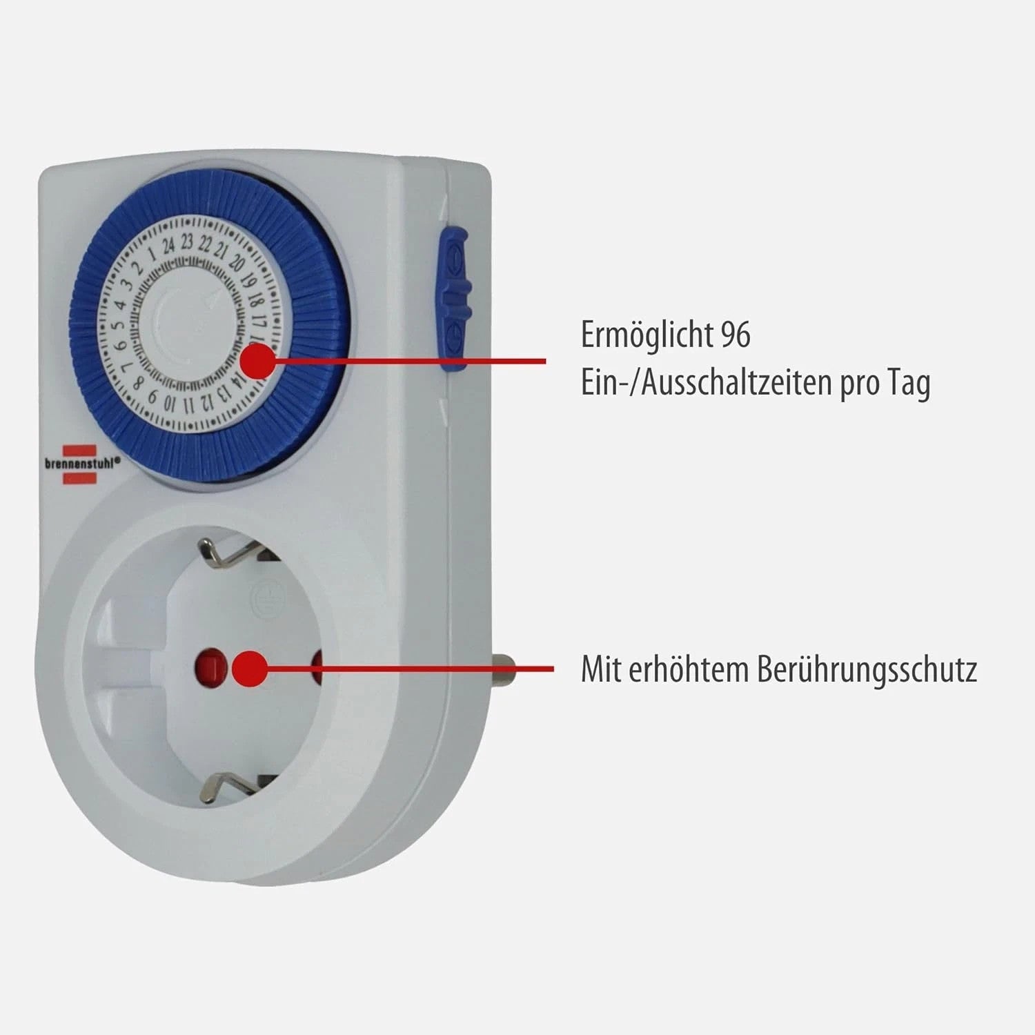 Brennenstuhl Zeitschaltuhr MMZ 20, Mechanische Timer-Steckdose (Tages-Zeitschalt