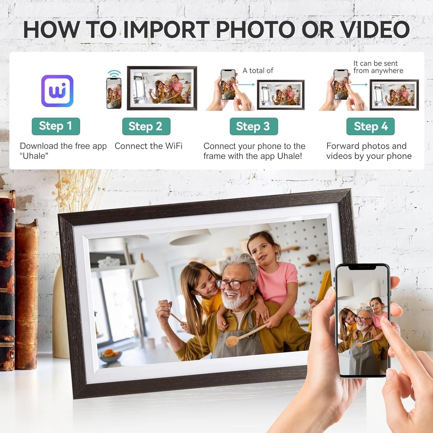 - 【Geschenk】: Digitaler Rahmen kann einen beeindruckenden Moment zeigen, wie Geburt, Hochzeit, Abschlussfeier, Urlaub, Familientreffen. Daher ist es die beste Wahl für Weihnachtsgeschenke/Erntedankfestgeschenke/Muttertagsgeschenke.