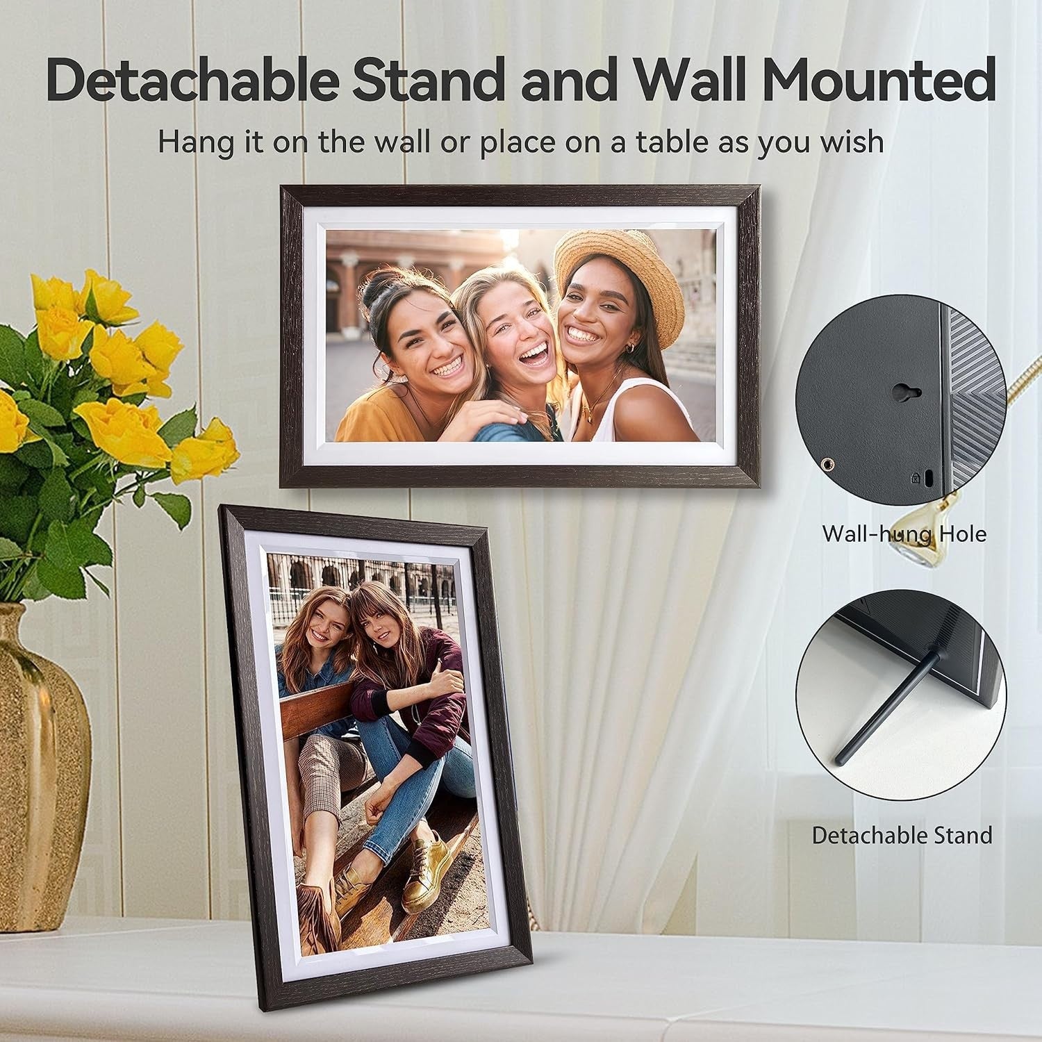 - 【Heimdekoration】: Der digitale Bilderrahmen ist ein Walnuss-Holzimitat, sehr klassisch und elegant. Es kann im Hoch- oder Querformat auf dem Schreibtisch oder an der Wand platziert werden, sehr gut als Dekoration geeignet.