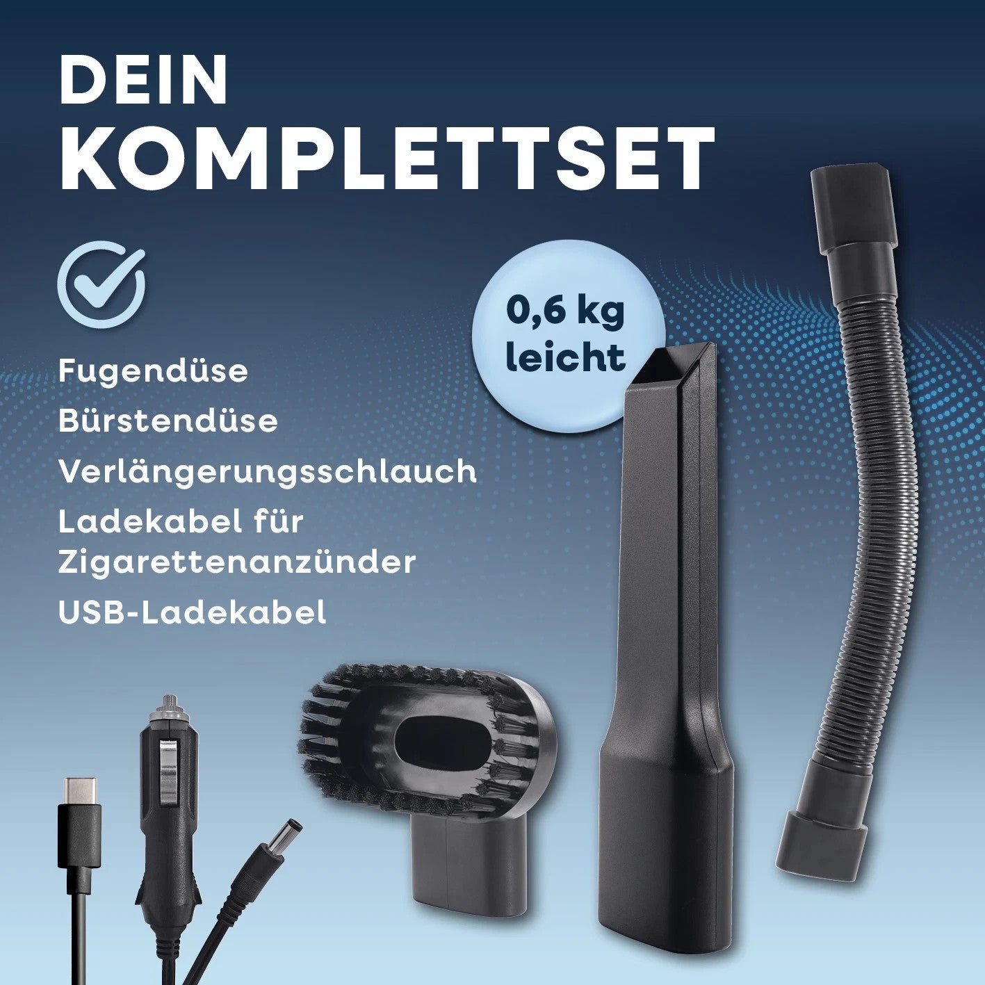 • KOMPLETTPAKET: Mit Fugendüse, Bürstendüse, Verlängerungsschlauch, LED-Licht & EPA-Filter – kabellos und tragbar
