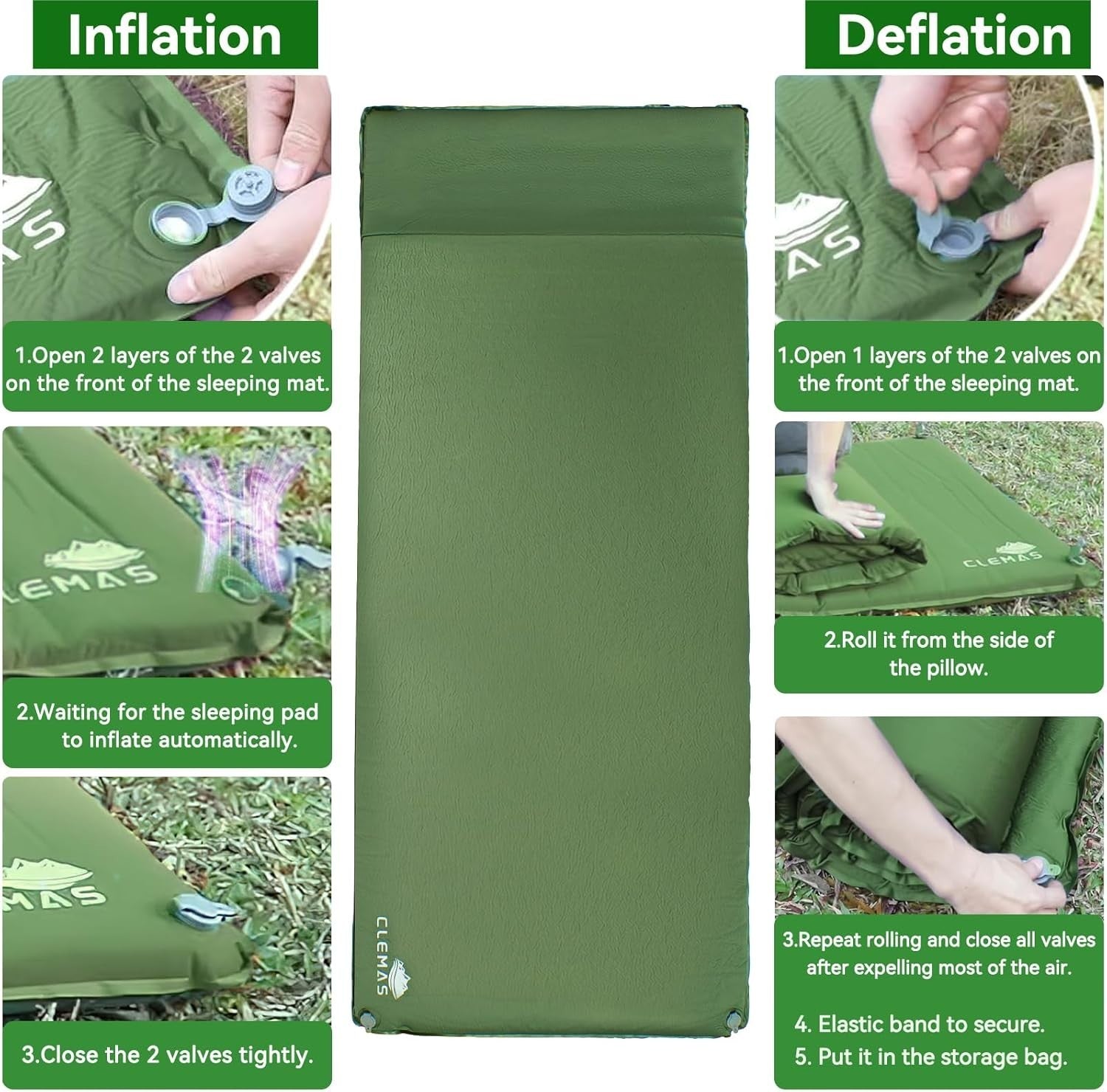 Clemas Isomatte Camping Luftmatratze-Selbstaufblasend in 20 Sekunde, Isomatte Ou