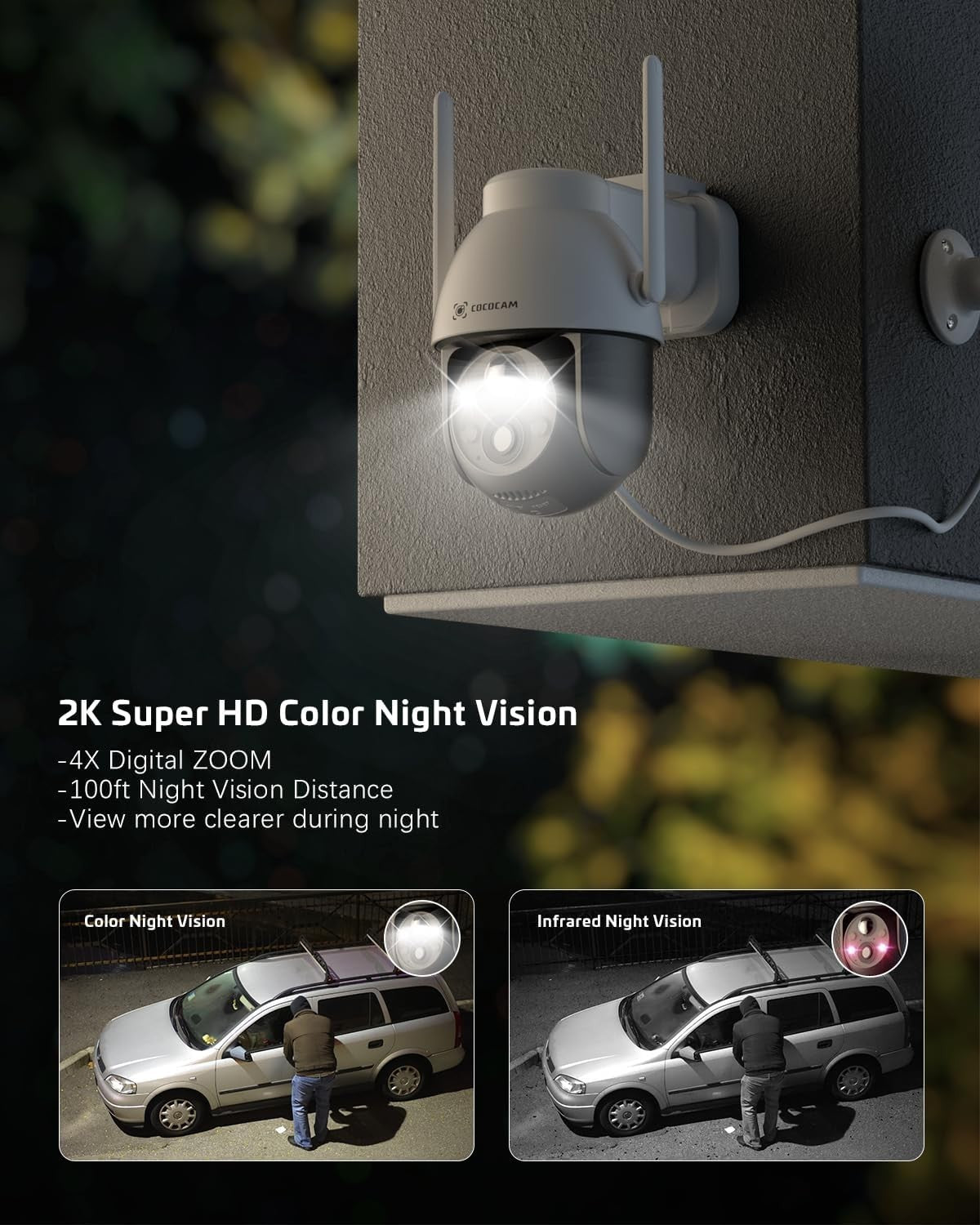 - 2K QHD Video & Flexible 360° View Coverage -- Die Cococam Sicherheitskamera bietet eine hochauflösende 3MP Bildqualität. 355° Schwenken, 120° Neigen und 4-facher Digitalzoom sind über die App (Cloudage&Cococam) steuerbar. Mit einem 130-Grad-Weitwinkel garantiert die PTZ-Kamera für den Außenbereich einen Panoramablick auf jeden Winkel Ihres Hauses, Geschäfts, Ihrer Garage und Ihres Bauernhofs.