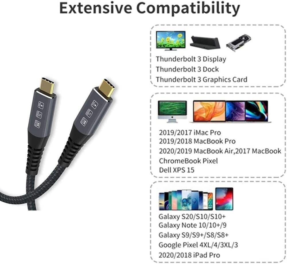 • 【Breite Kompatibilität】 Das TB4 Kabel Unterstützt Macbook air M1/ M2, Mac Studio, Studio Display, Mac book Pro, 2017+ Mac, 2017+ Mac Pro, Surface Pro 8, Thunderbolt 3/4 Laptops und PCs, TB4 Docking. HINWEIS: Nicht unterstützt Universal Audio Apollo X8,Apollo X4 und Arrow-Geräte und LG: 34WK95U 5K-Display.