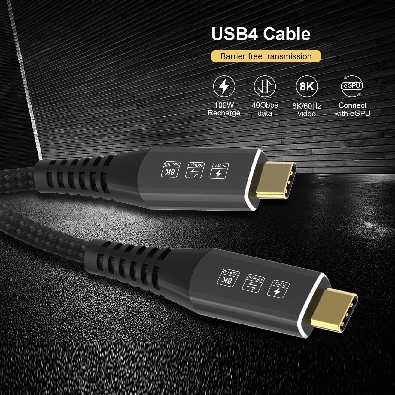 ConnBull Kabel für Thunderbolt 4 40Gbps, USB C 4 Kabel 100W Unterstützt 1x8- 3M