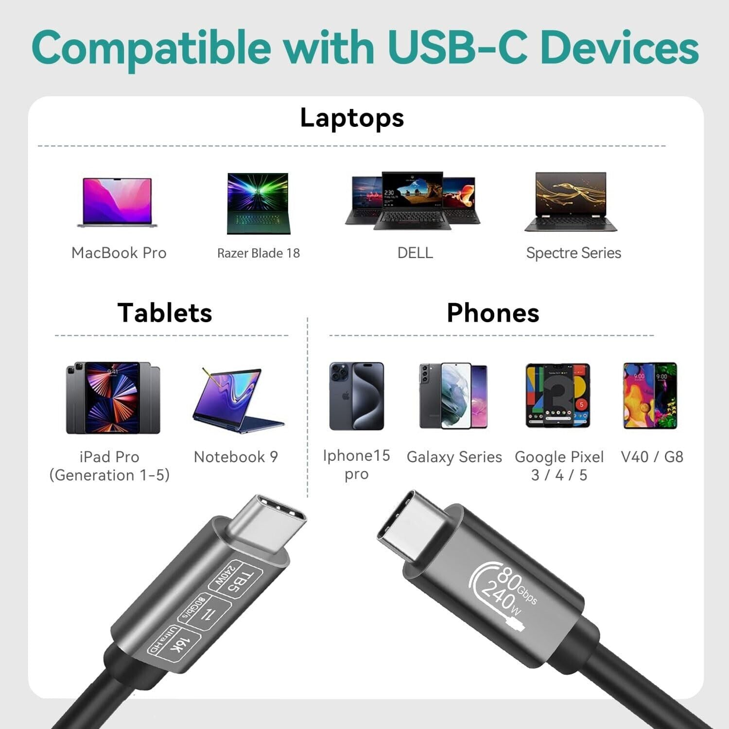 - 240W Schnellladen: Mit dem Thunderbolt 5 Kabel unterstützen PD3.1 240 W Schnellladen. Es kann schnelles Laden für Razer Blade 18 und mehr Hochleistungs-Laptops, Tablets und andere Geräte bieten schnelles Laden