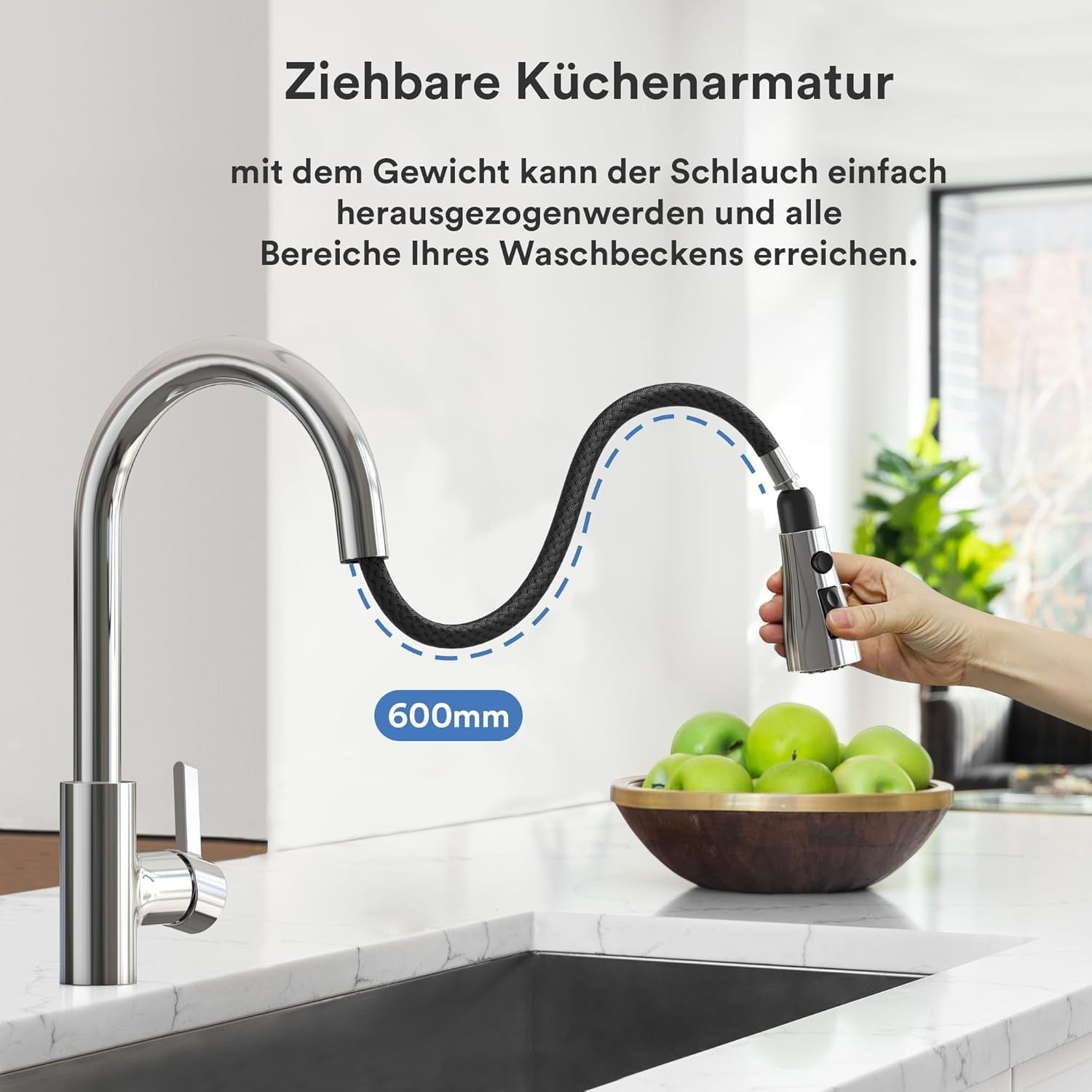 - Bequem in der Anwendung: Die Küchenarmatur verfügt über 3 Sprühmodi (Strahl, Sprühen, Pause) und einen herausziehbaren Sprühkopf, um verschiedenen Reinigungsanforderungen gerecht zu werden. Der herausziehbare Sprühschlauch erstreckt sich etwa 60 cm und ist mit einem 360°-Schwenkauslauf kombiniert, um alle Winkel des Küchenwaschbeckens oder Doppelwaschbeckens für eine ausgezeichnete Spülqualität abzudecken