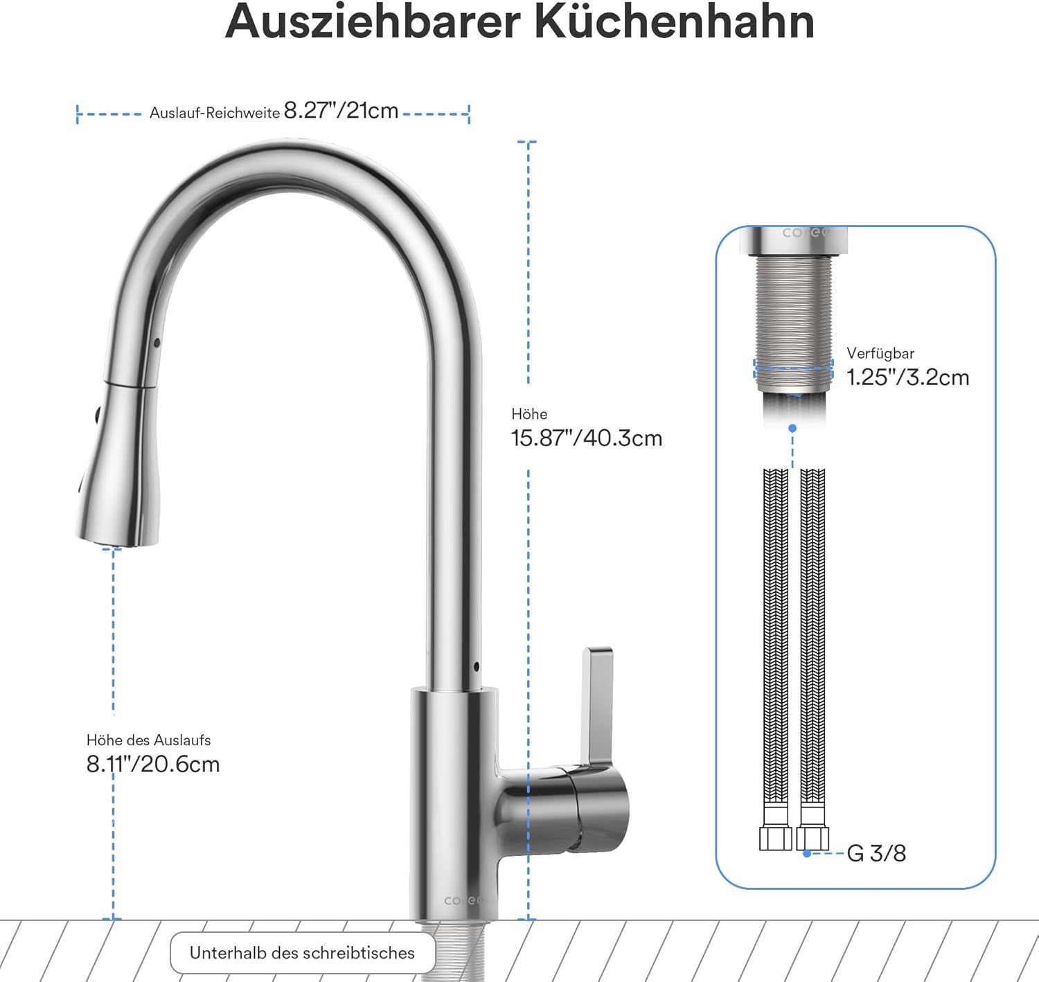 Coree KF-11 Wasserhahn Küche, Hochdruck Küchenarmatur, Ausziehbar