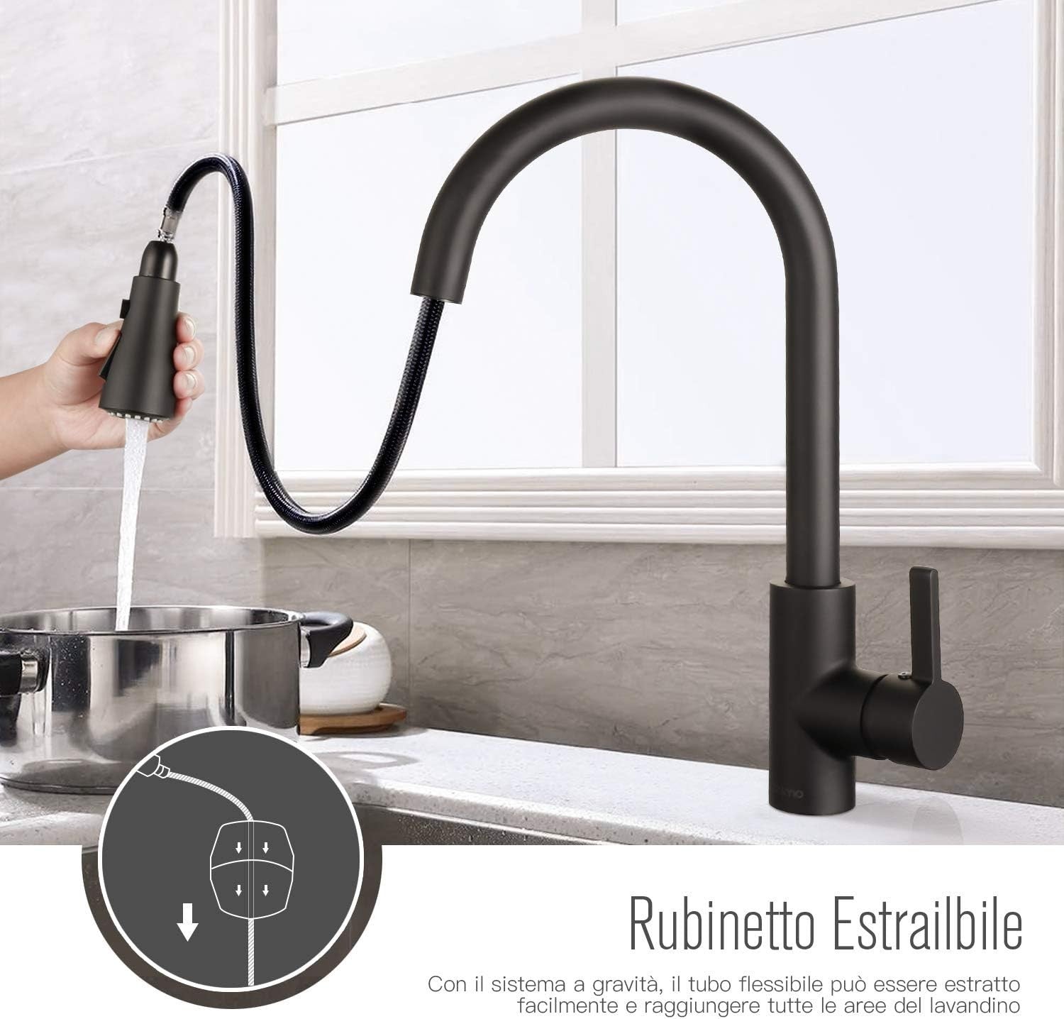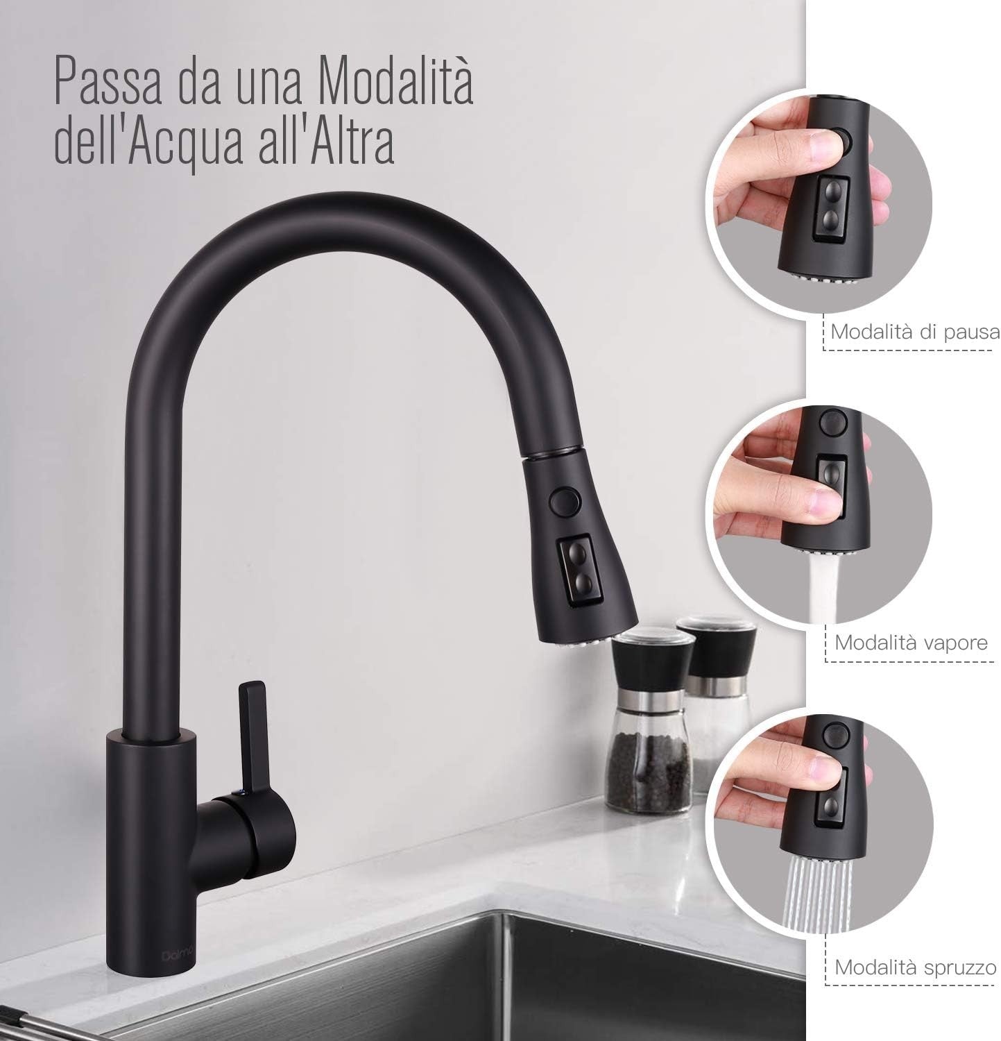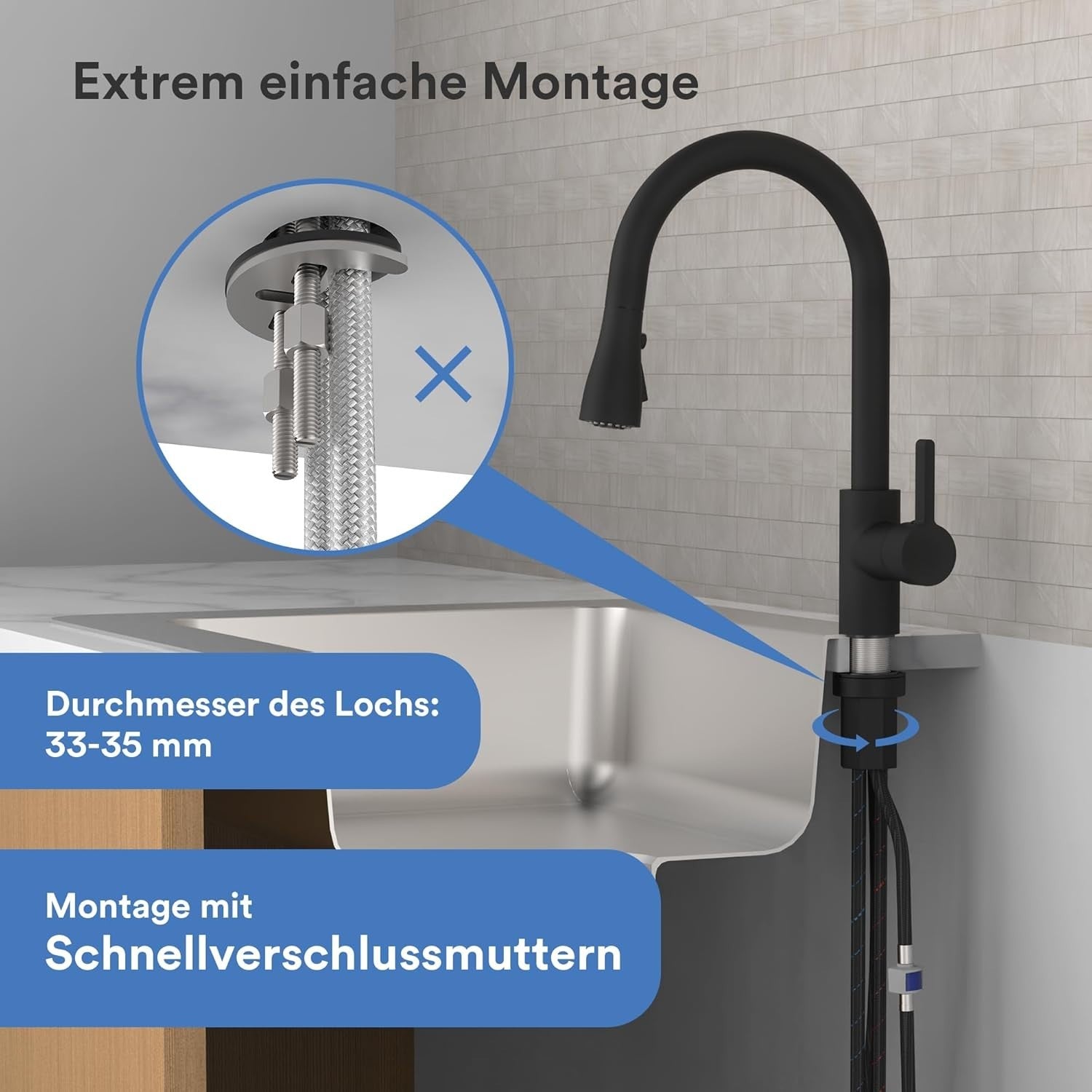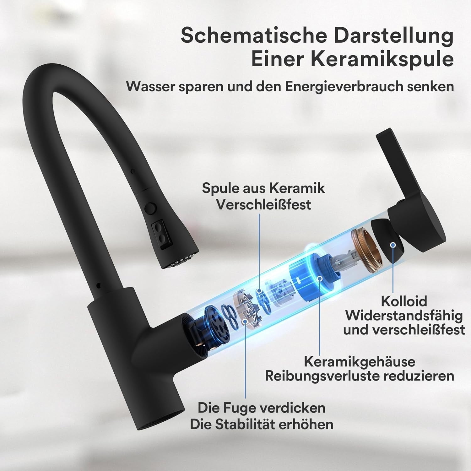 Coree KF 12 Wasserhahn Küche Schwarz, Küchenarmatur Ausziehbar, Hochdruck