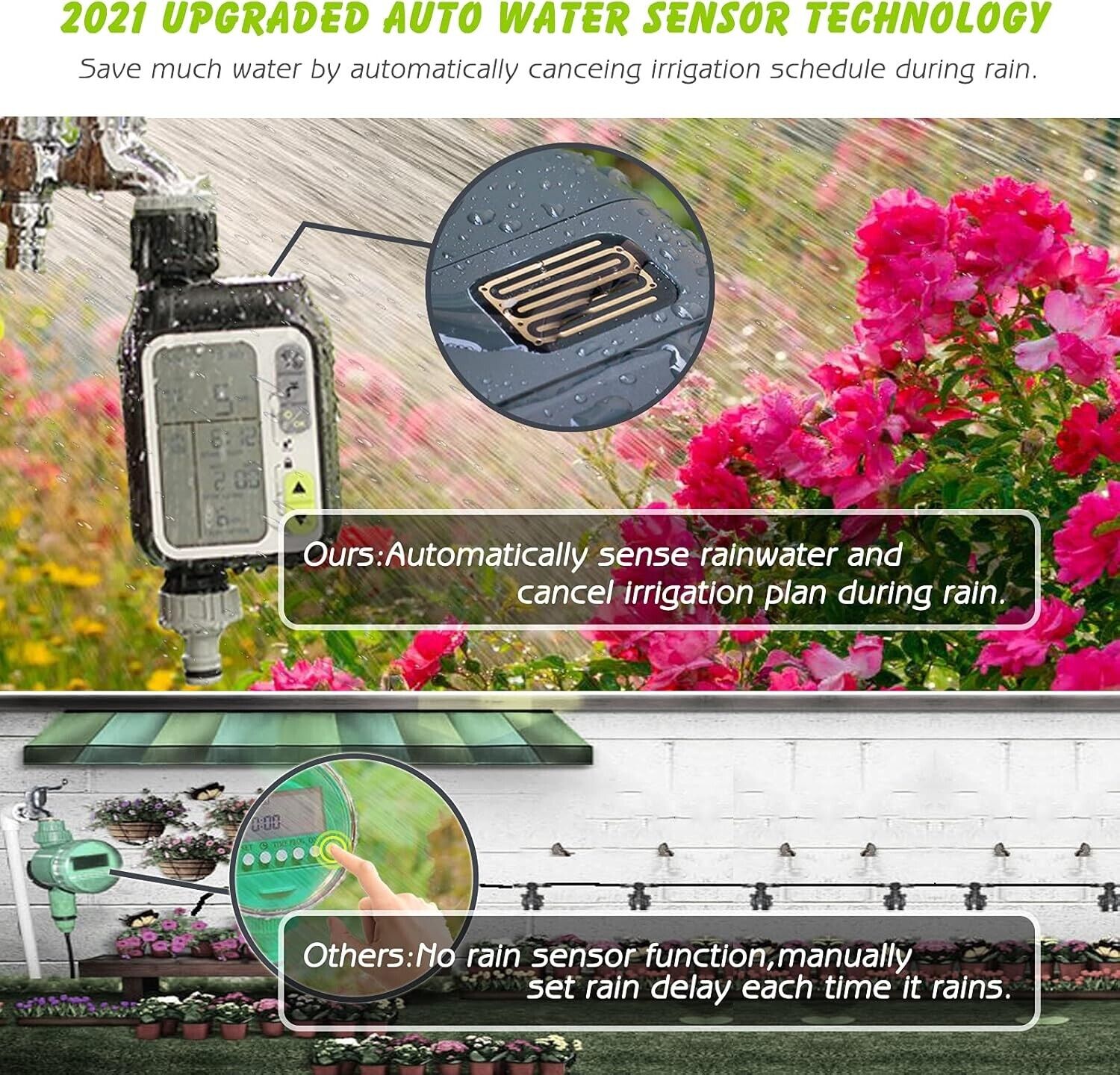 Regen Aoto Sensor: Die Oberseite des Smart Timers ist mit einem Regensensorchip ausgestattet. Wenn der Regen den Chip berührt, verzögert er automatisch die Bewässerung, bis sich kein Wasser mehr auf dem Chip befindet.