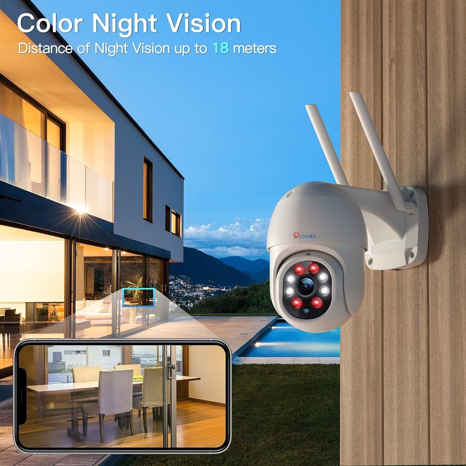 2.5K 4MP Überwachungskamera Aussen WLAN, 2560×1440P Ctronics PTZ 2,4/5GHz Dualband WiFi IP Kamera Outdoor mit Automatische Verfolgung, Personenerkennung, 355°/90° Schwenkbar, Farbiger Nachtsicht, IP66