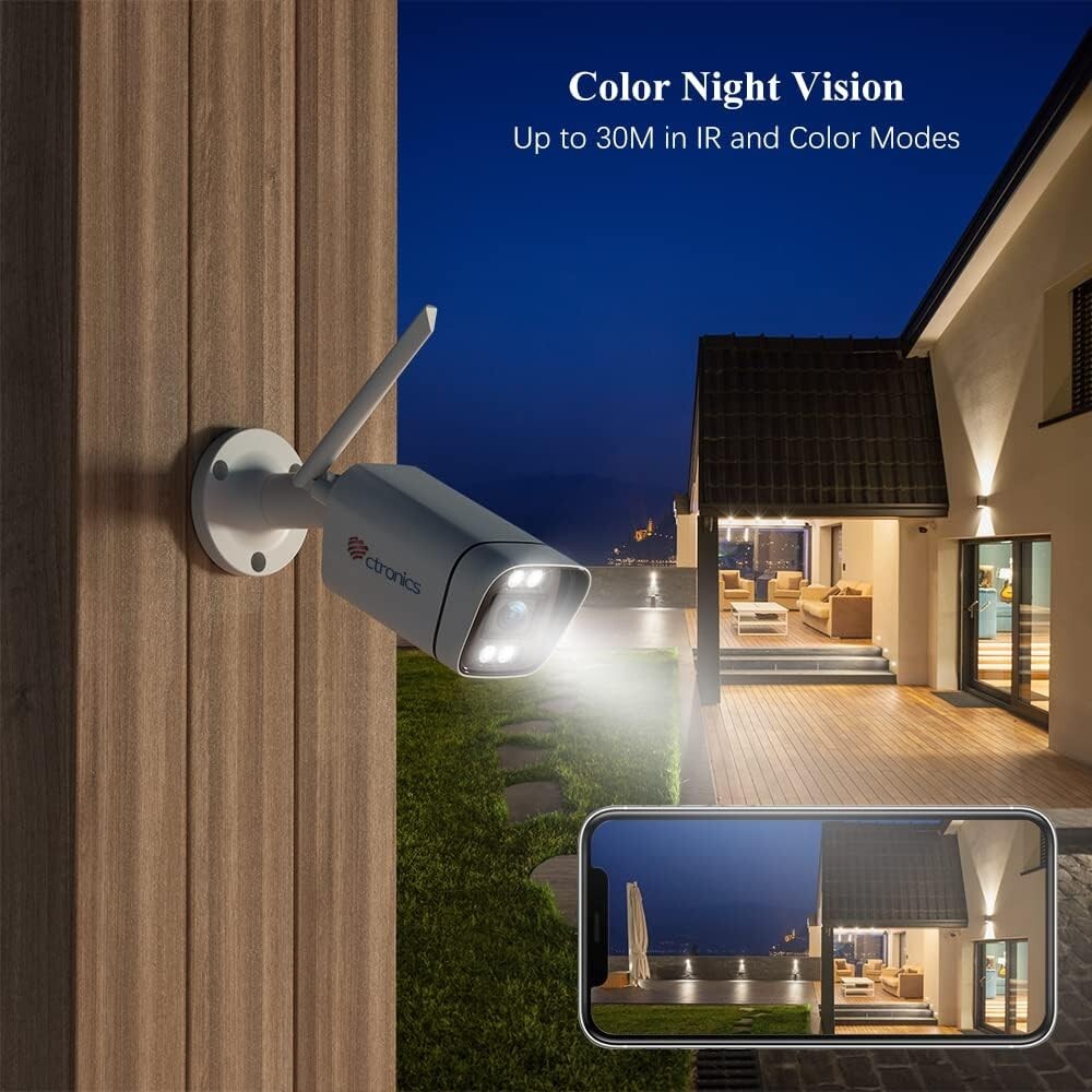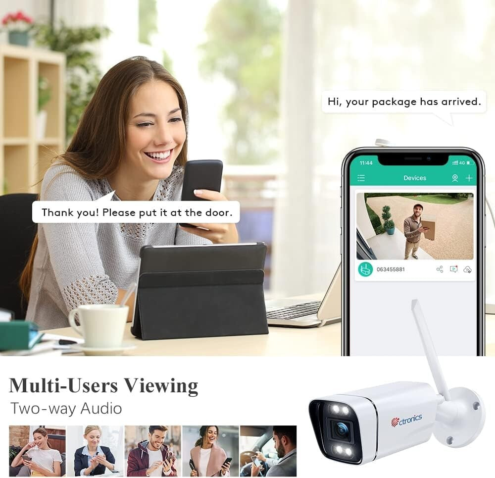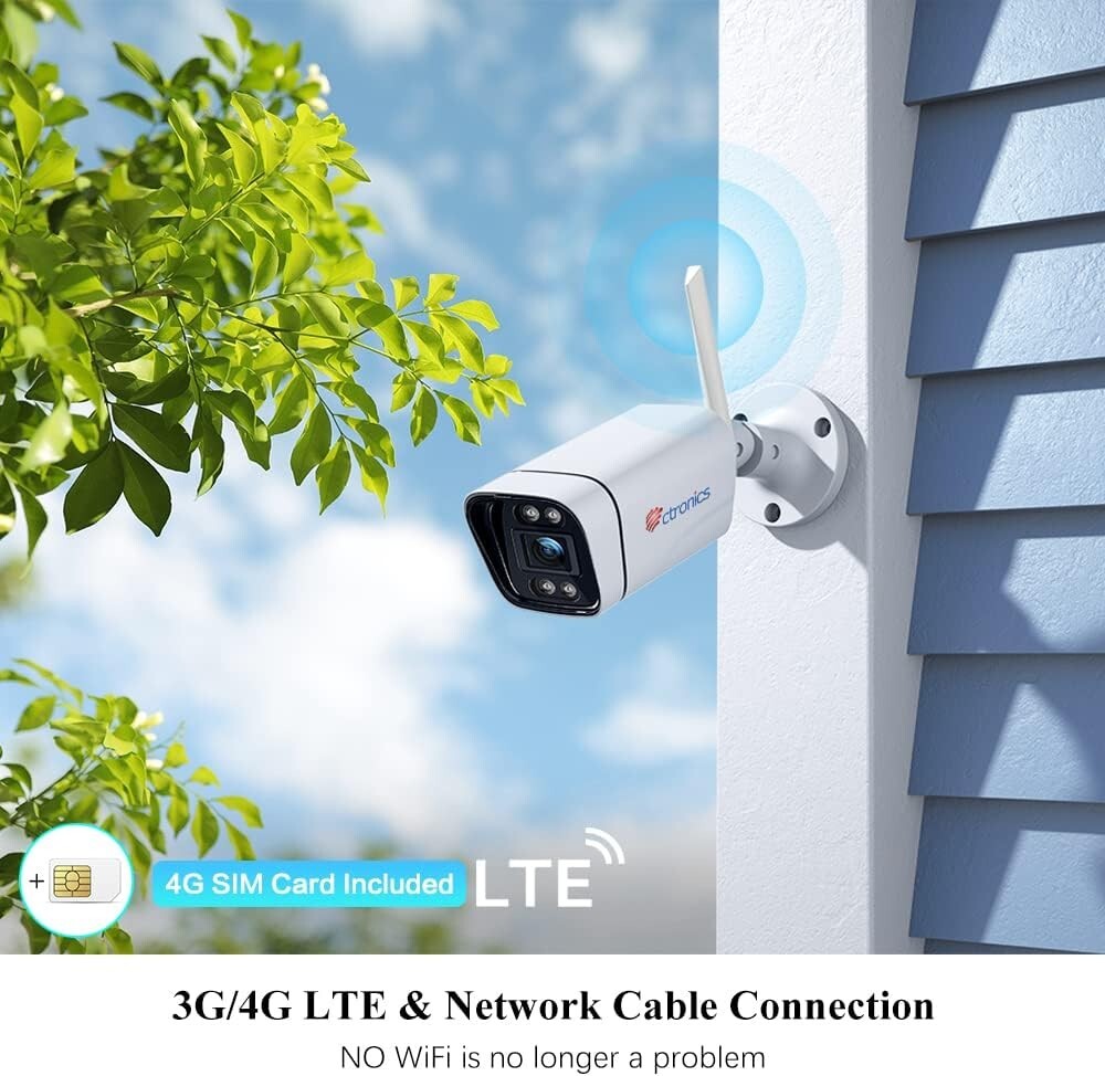 Ctronics Überwachungskamera 4G/3G LTE, Kamera 4G für den Außenbereich, 1080P IP-Kamera, 30 m, Nachtsicht, Farberkennung, Audio, bidirektional, Alarm, Licht - Ohne SIM-Karte im Lieferumfang