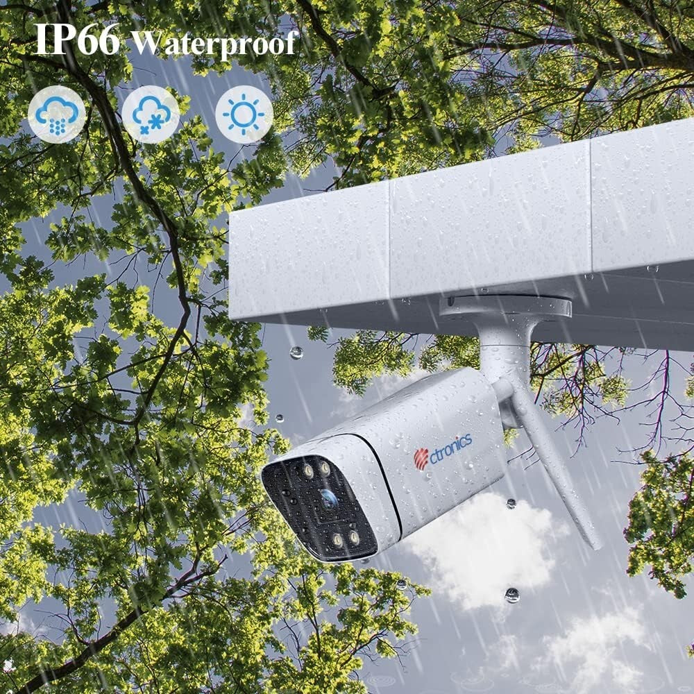 • 【IP66 Wasserdicht & Metallmaterial】 Die Kamera 4G SIM-Karte für den Außenbereich ist mit einem wasserdichten IP66-Außengehäuse ausgestattet, sodass sie auch bei extremen Wetterbedingungen (-10°C ~ 60°) gut funktioniert. Darüber hinaus besteht die 4G-Überwachungskamera mit SIM-Karte aus Metall, was eine gute Wärmeableitung bietet und die Lebensdauer der CTRONICS 4G-Kamera erheblich verbessert. Wenn die Arbeitsfeuchtigkeit 10% ~ 80% beträgt, kondensiert die Kameraschale nicht so gut.