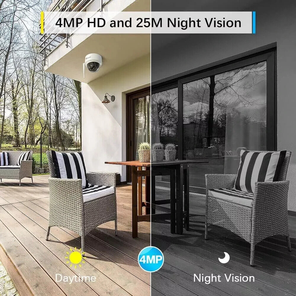 - 25M Nachtsicht & Zwei-Wege-Audio - Die ptz kamera outdoor wendet 2 Stück IR-LEDs an, sowie fortschrittliche digitale Bildrauschen-Reduzierung, um sicherzustellen, dass die Objekte oder Personen in der Dunkelheit deutlich sichtbar sind. Durch die Unterstützung des intelligenten IR-Auto-Schalters beträgt die Nachtsichtweite dieser ip kamera outdoor bis zu 25 Meter. Die Zwei-Wege-Funktion mit eingebautem Mikrofon und Lautsprecher ermöglicht eine Echtzeit-Konversation mit Besuchern.