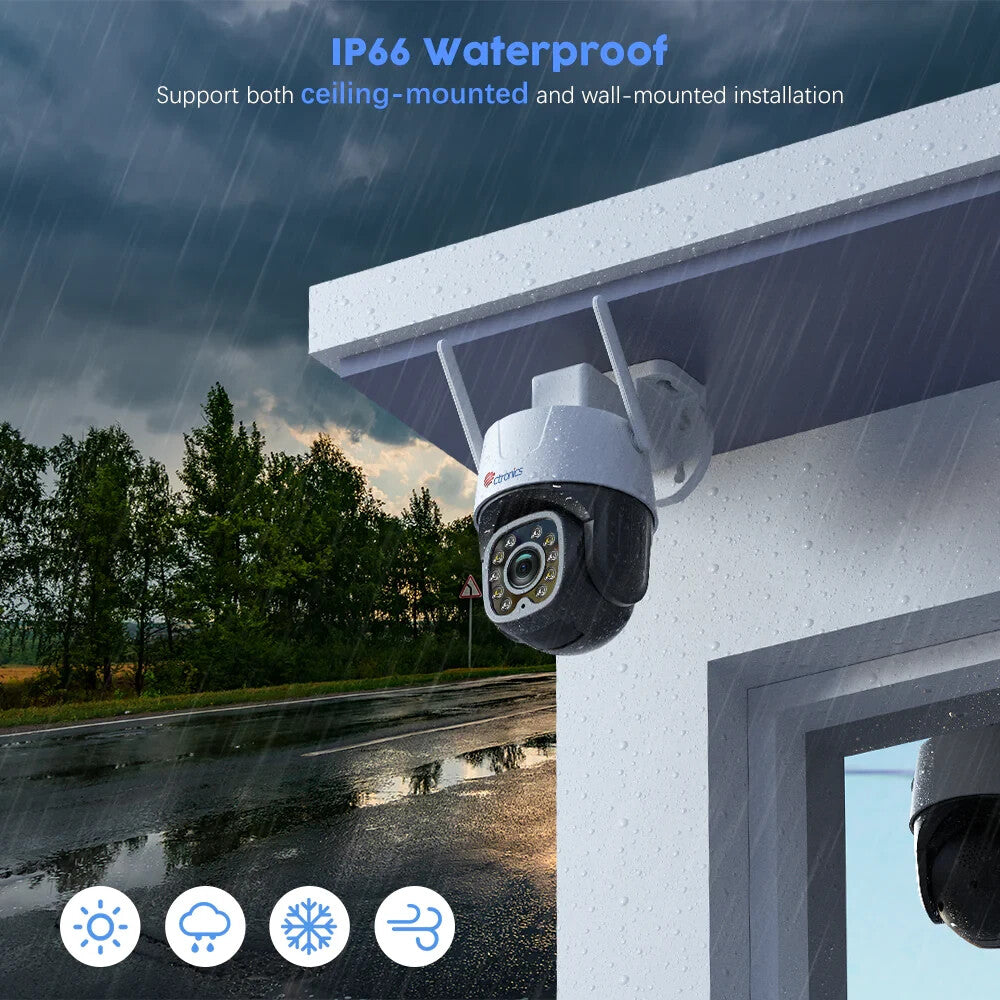 - Breite Kompatibilität, IP66 wasserdicht. Diese CCTV-Überwachungskamera ohne WLAN ist mit IOS/Android-Systemen über die CTRONICS/CTRONICS PRO-App und Windows/Mac-Systemen über die HiP2P-Software kompatibel. Sie können Videos und Bilder jederzeit auf dem Mobiltelefon/PC überprüfen. Diese 4G-Außen-IP-Kamera ist mit einem wasserdichten IP66-Außengehäuse ausgestattet und funktioniert auch bei extremem Wetter gut.