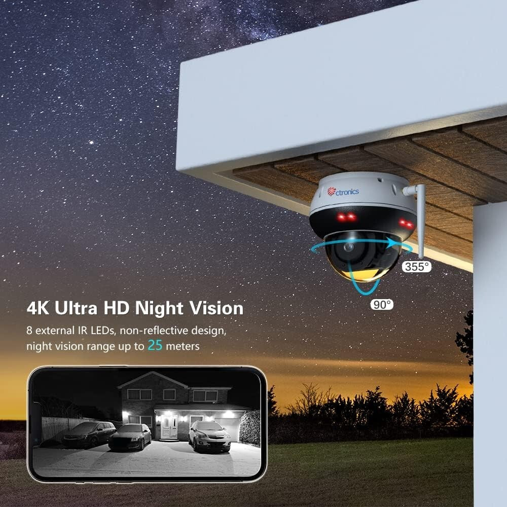 ctronics 4K 8MP PTZ Außen Überwachungskamera WiFi 2,4/5GHz WiFi Dome IP Kamera Outdoor mit Personen-/Fahrzeug-/Tiererkennung Automatisches Tracking 355° 90° Schwenkbar 25M Nachtsicht Zwei-Wege-Audio -