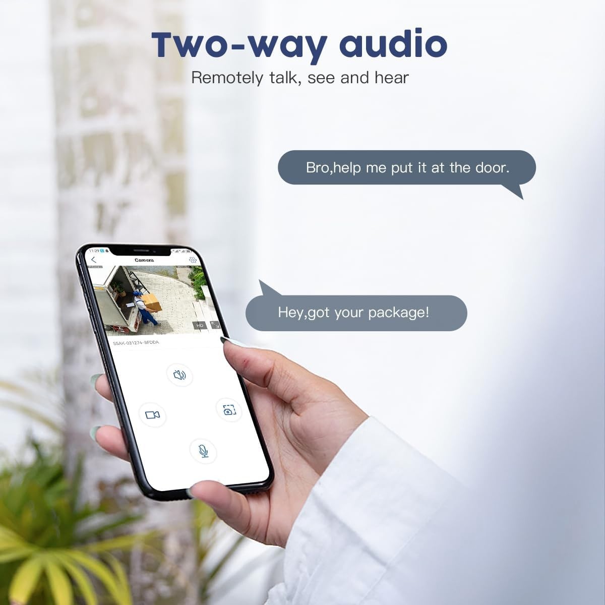 Ausgestattet mit 12 Scheinwerfern und 12 Infrarot-LEDs bietet unsere 4K-Außenkamera eine Nachtsichtreichweite von 20 Metern in Farbe bzw. 25 Metern im Infrarotmodus. Dank integriertem Mikrofon und Lautsprecher können Sie Besucher in Echtzeit hören und mit ihnen sprechen und so Eindringlinge abschrecken, um Ihr Haus zu schützen.