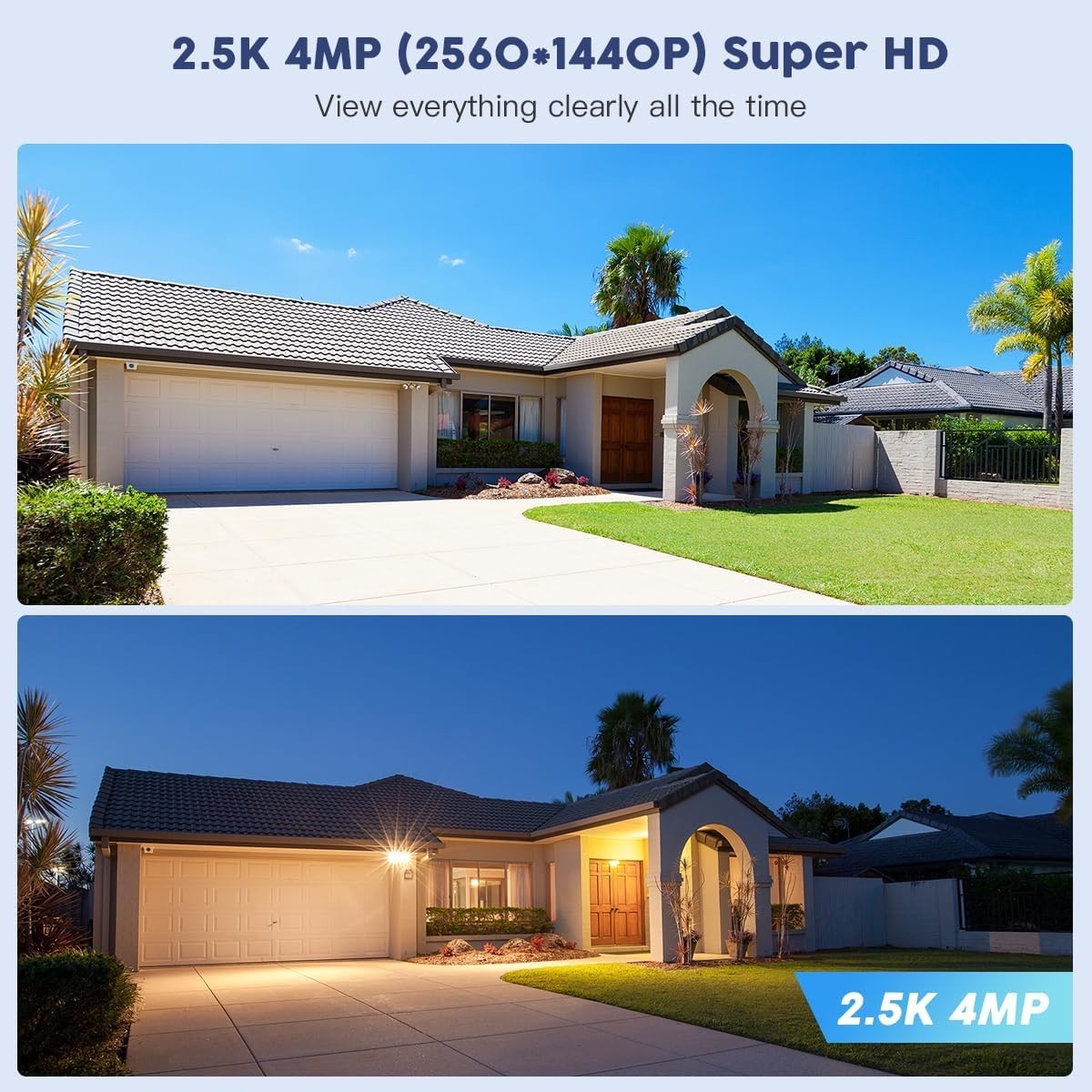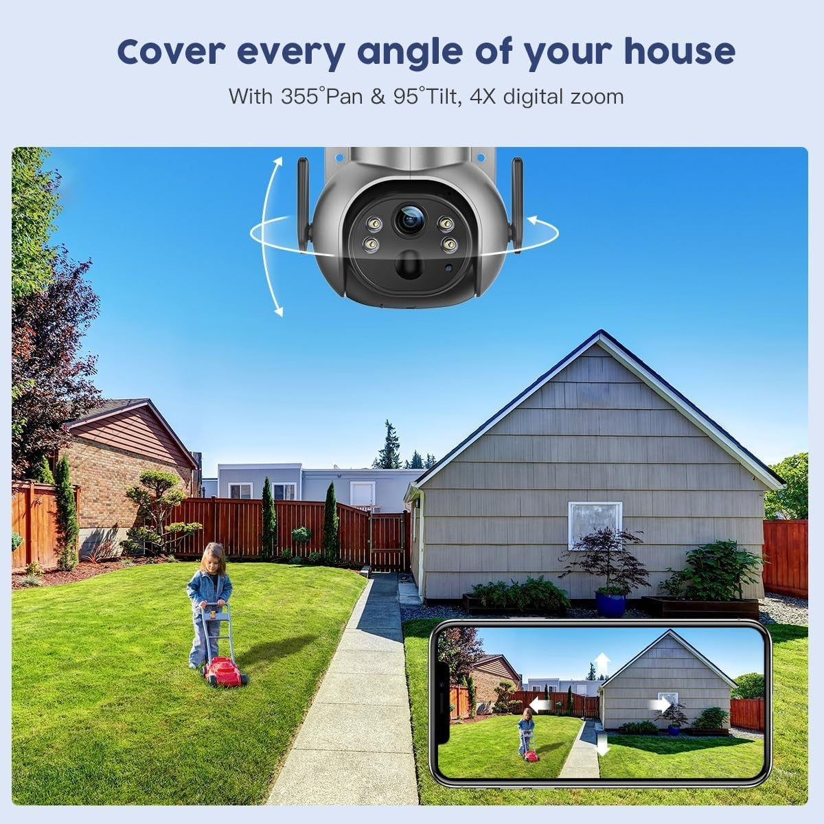 Diese solarbetriebene Außenüberwachungskamera verfügt über QHD-Pixel (2560 x 1440P) und 4-fachen digitalen Zoom, wodurch Sie klarere und umfassendere Details erfassen können.