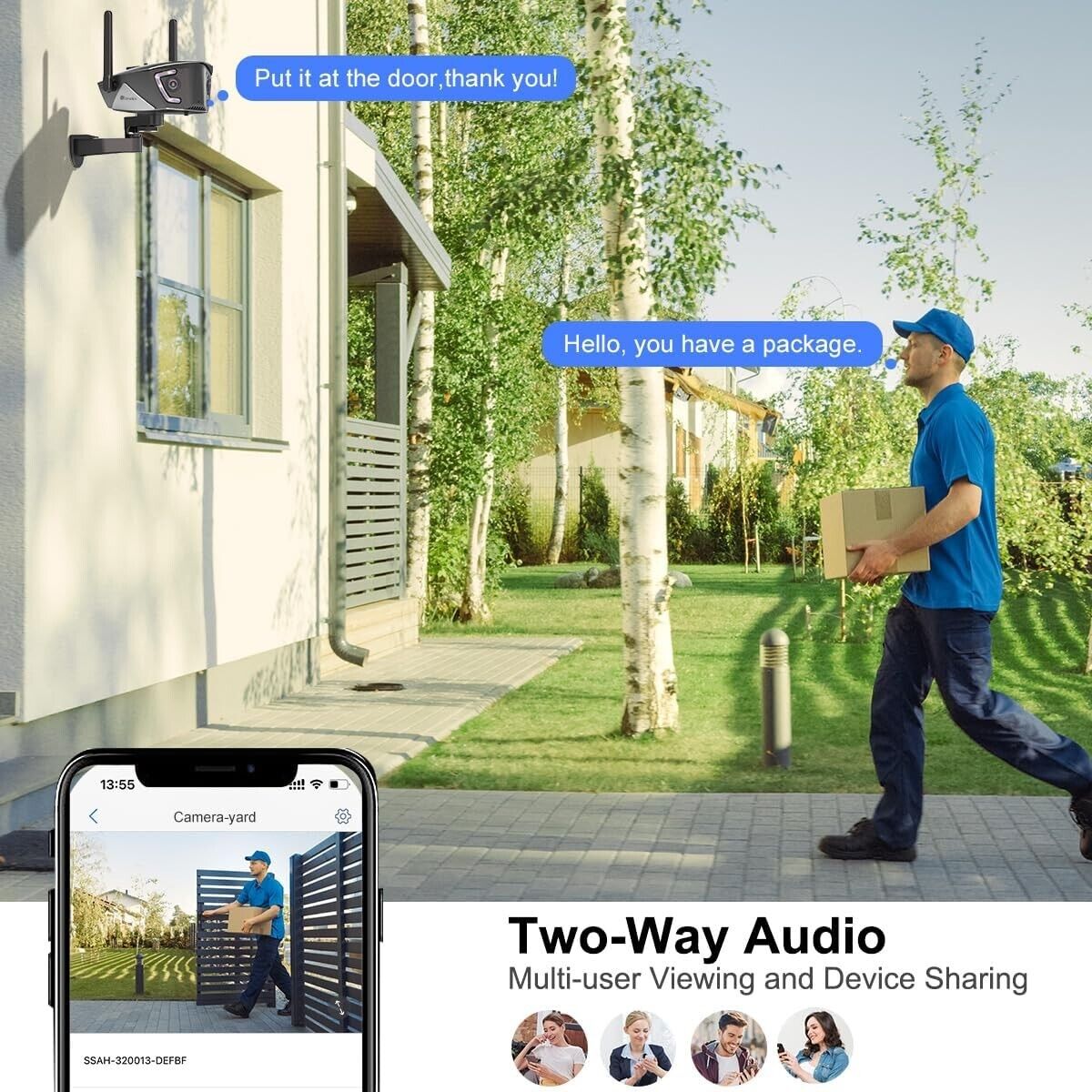 - INTELLIGENTE ERKENNUNG VON PERSONEN/FAHRZEUGEN/TIEREN: Diese 5G WLAN Kamera Outdoor erkennt mithilfe ausgefeilter Algorithmen echte Bedrohungen. Machen Sie sich nie wieder Sorgen über unerwünschte Alarme, die durch bewegende Äste oder fliegende Insekten entstehen, so haben Sie Seelenfrieden.